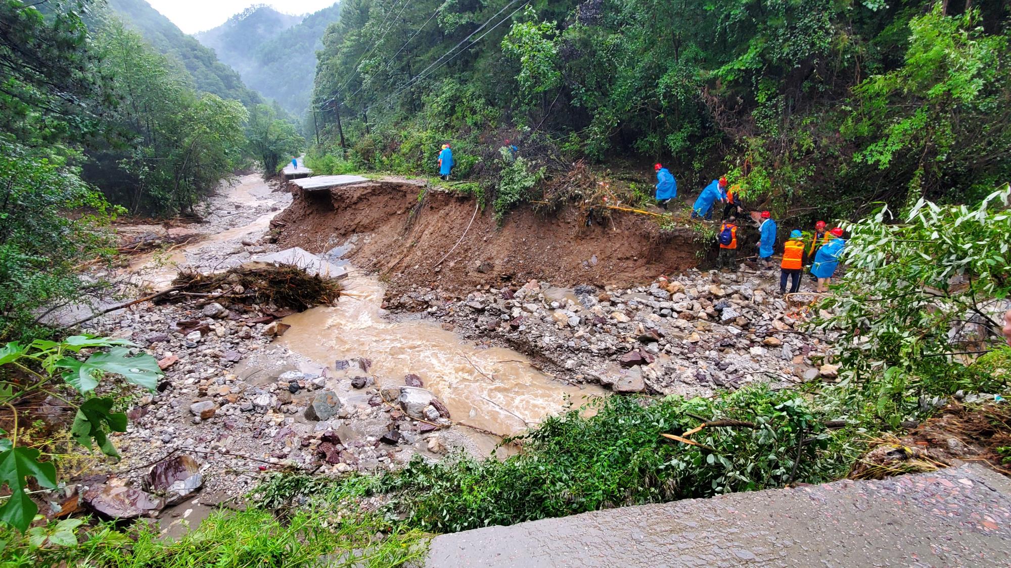 8月5日19时至6日凌晨2时许,金堆城钼业集团矿区、洛南县麻坪镇、石门镇一带突降暴雨,强降雨持续约8小时,降雨量达187.8mm,局部降雨量达206mm,初步推算已达到500年一遇级别暴雨。突如其来的暴雨导致河道水位上涨,道路冲毁,交通、通讯、供水、供电一度中断,区域内非煤矿山、选矿厂、尾矿库等设施遭到不同程度的损毁。“灾情就是命令”,先锋队火速进驻此次受灾严重的金堆城矿区和洛南石门镇区域,全力投入抗洪抢险工作,主动采取措施处理拉沟,为抢险救灾指挥中心和受灾企业提供技术支持,认真贯彻落实习近平总书记提出的“人民至上、生命至上”指示,切实保卫人民生命财产安全。董忠级、徐政于8月6日早,陪同威廉希尔williamhill中文党委副书记、总经理邹武装,党委委员、副总经理王天雄,安全生产部张跃农主任等领导第一时间赶赴灾区,克服道路不通的困难,步行进入栗西尾矿库、王家坪尾矿库等重点部位,查看灾情,对具体防汛抢险抢修工作提出了建设性指导意见,目前处置效果良好,取得预期效果。