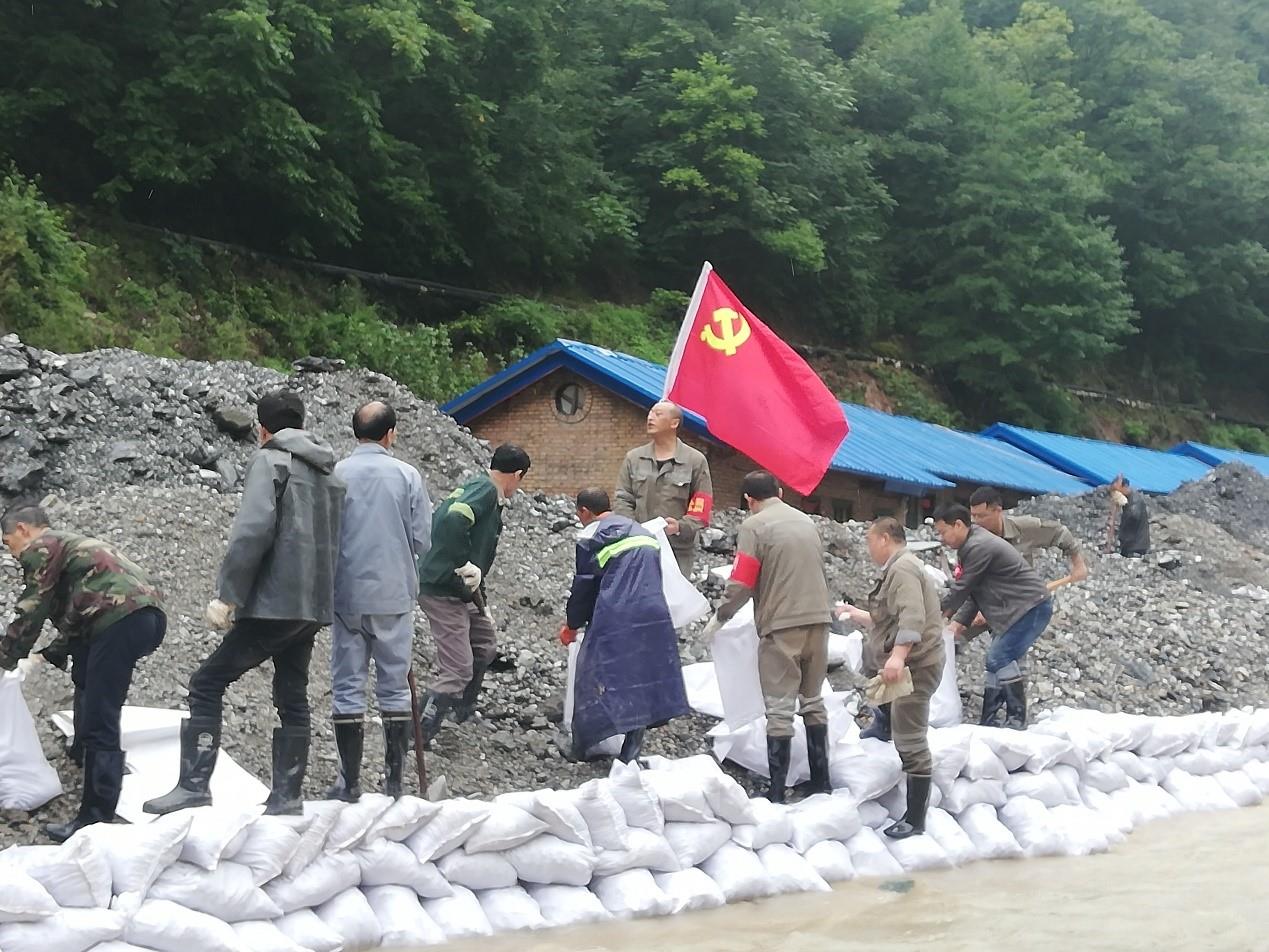 地处商洛的洛南秦金矿业公司在此次汛情中也经受了前所未有的考验,在坑口被矿渣掩埋、采场、运输巷道受损、便桥道路冲毁、厂区多处进水、山体滑坡、供电设备受损的情况下,公司党支部号召党员干部亮身份、作表率、比贡献,将救灾一线作为“弘扬延安精神”的教育考场,他们雨里来、泥里去,迅速铺设排水管、抢修水泵、运送油料……在党员干部的引领下,职工群众纷纷参与进来,加足马力,并肩鏖战。艰难时刻,公司还向当地政府提供铲运机1台、挖机2台,体现了国企的铁肩担当。