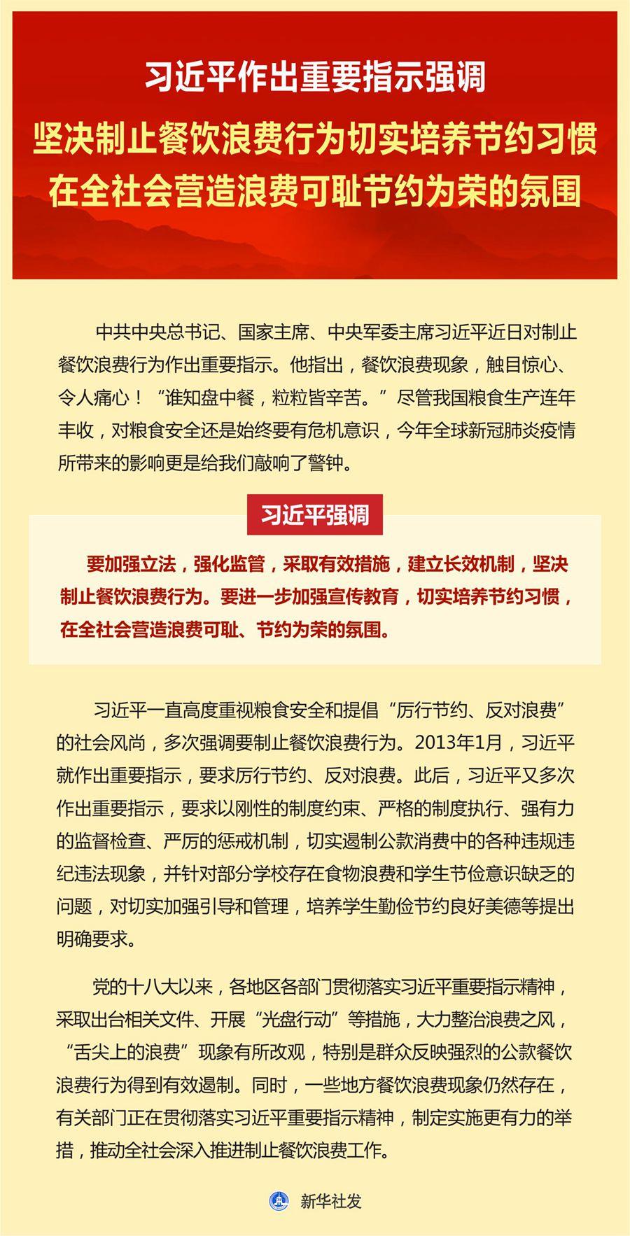 【学习资料】习近平作出重要指示强调坚决制止餐饮浪费行为切实培养节约习惯在全社会营造浪费可耻节约为荣的氛围