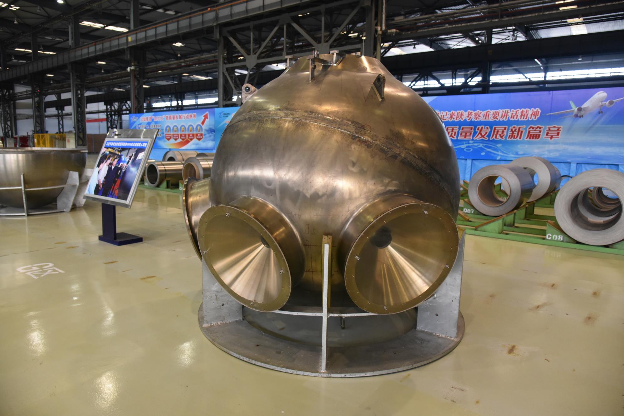 陕西有色宝钛集团研制的万米级载人潜水器钛合金载人球舱。