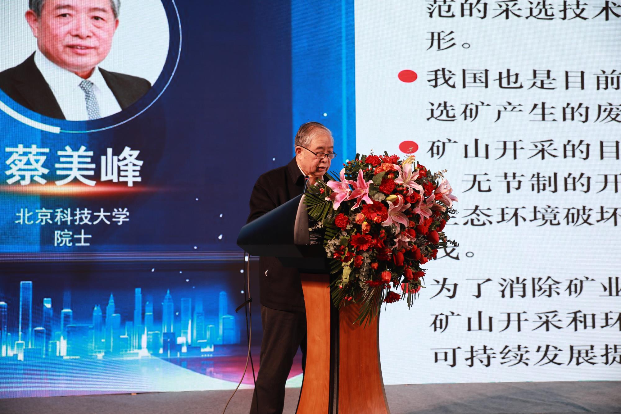 随后,中国工程院院士、北京科技大学教授蔡美峰,作了题为《加快推进绿色矿山建设 实现矿产资源智能可持续发展的》的主题报告。报告内容从绿色矿山的重要性、矿产资源主要问题与关键技术、深部开发主要问题与关键技术、智能化无人采矿等方面展开,对矿山企业可持续发展具有较强的指导性。