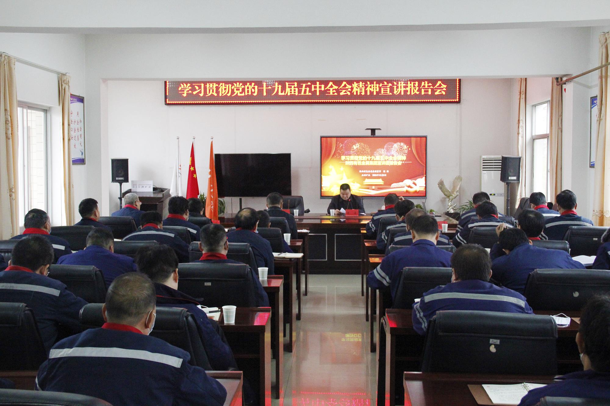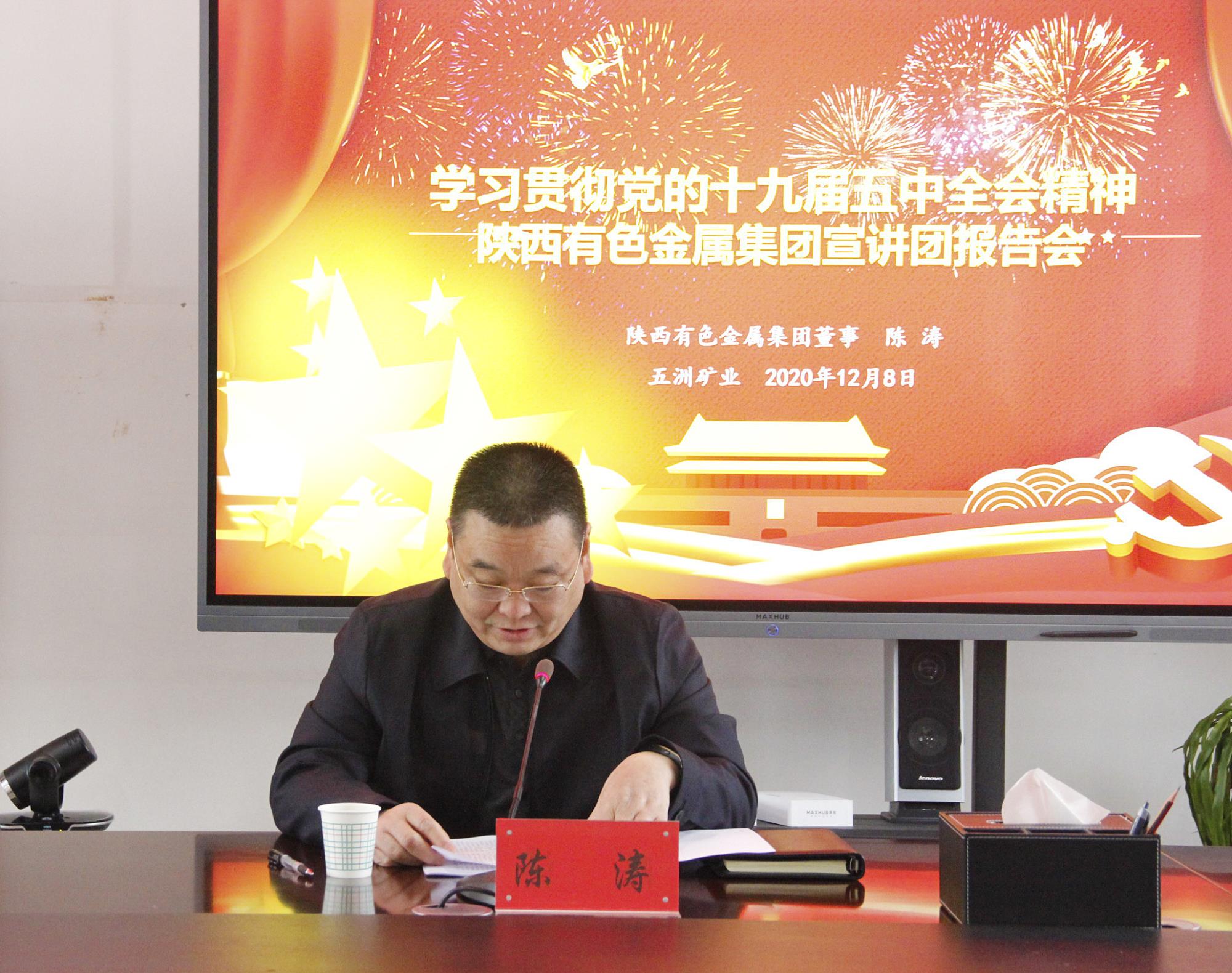 12月8日,学习贯彻党的十九届五中全会精神威廉希尔williamhill中文宣讲团报告会在五洲矿业举行。威廉希尔williamhill中文宣讲团成员、董事陈涛作宣讲报告,五洲矿业党委书记、董事长张景奇主持。