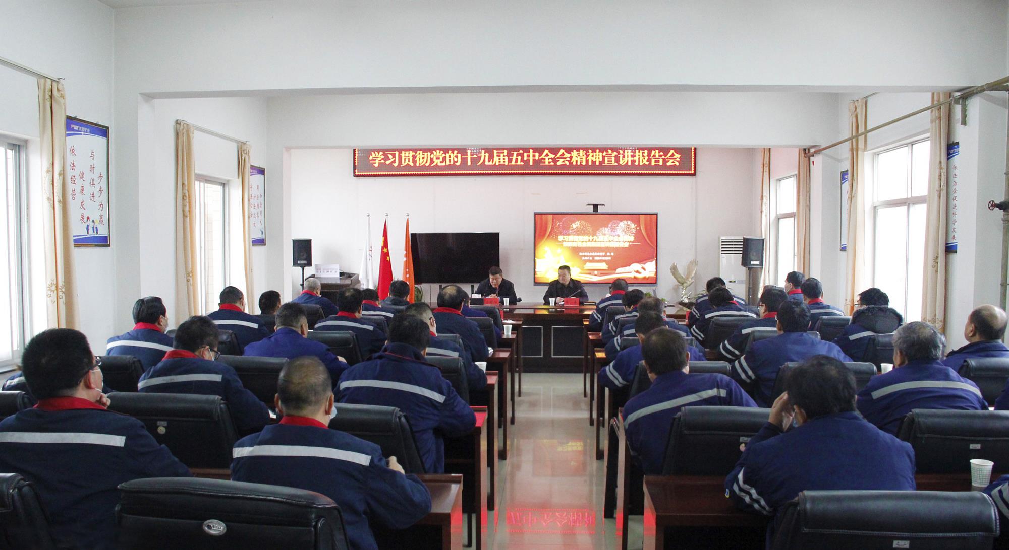 张景奇在主持会议时指出,学习好、宣传好、贯彻好党的十九届五中全会精神是当前和今后一个时期的重要政治任务。公司各支部和全体党员干部职工要以此次宣讲报告会为契机,在公司迅速兴起学习宣传贯彻党的十九届五中全会精神热潮。要进一步提高政治站位,强化政治意识,加强组织领导,学深悟透全会精神。要认真组织好全会精神的传达、宣传、贯彻,利用网站、微信公众号、黑板报、宣传栏、举行宣讲报告会等深入开展学习宣传活动,引导公司干部职工深刻领会全会精神的核心要义。要带着信仰学、带着感情学、带着责任学,确保全会精神入耳、入脑、入心,切实把学习贯彻成果体现在推动企业发展的实效上。