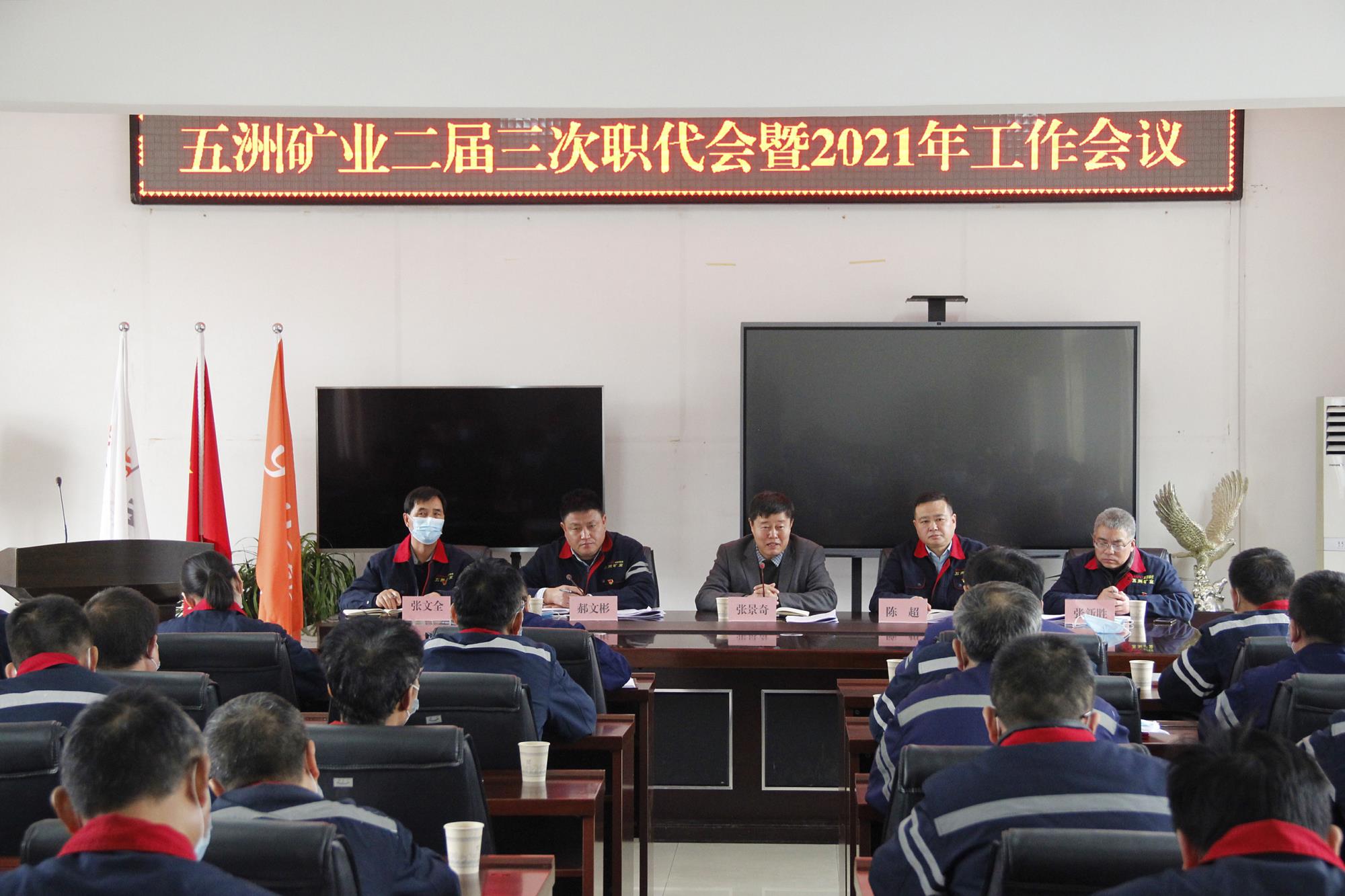 辞旧岁一元复始,迎新年万象更新。2月4日上午,五洲矿业二届三次职工代表大会暨2021年工作会议在公司四楼会议室召开。公司班子成员、职工代表、受表彰的集体奖和个人奖代表共47人参加了会议。职代会应到职工代表55名,实到47名,符合法定人数。会议由党委副书记、副总经理郝文彬主持。