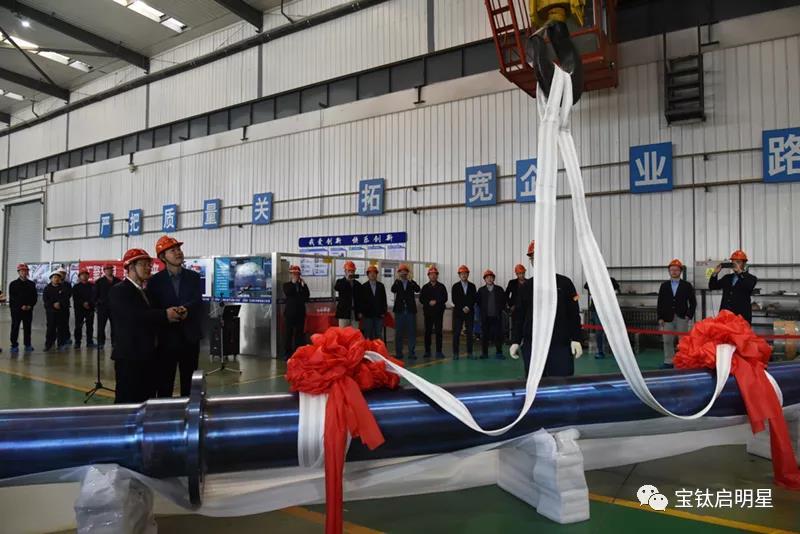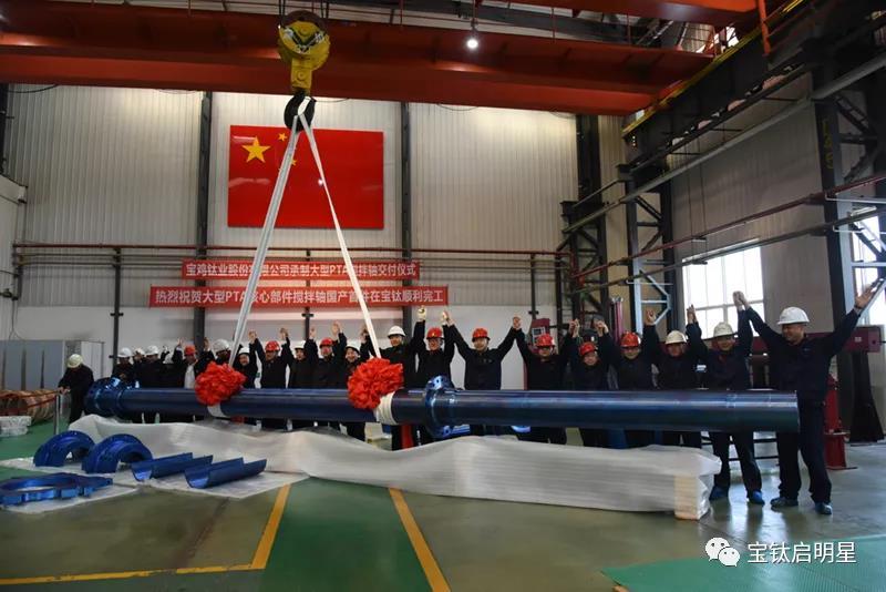 3月23日上午,由宝钛股份承制的重达12吨,长达12余米的大型PTA核心部件——钛合金搅拌轴交付典礼在装备制造公司现场顺利举行。这标志着公司具备了向大型PTA提供核心部件的能力,必将成为公司新的利润增长点。