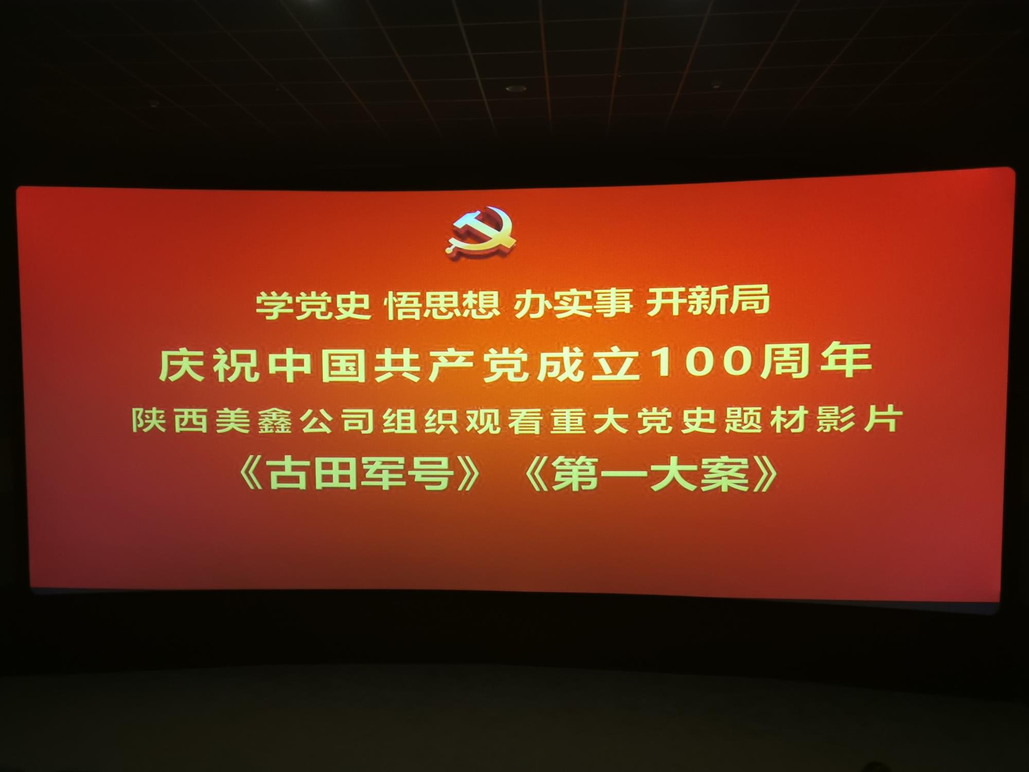 为庆祝中国共产党建党100周年,深入推进党史学习教育扎实开展,巩固“不忘初心、牢记使命”主题教育成果,进一步落实习近平总书记关于“用党的历史教育党员、教育干部”的重要指示精神。3月24日至3月26日,陕西美鑫公司党委分三次组织党员干部观看重大党史题材电影《古田军号》和《第一大案》。