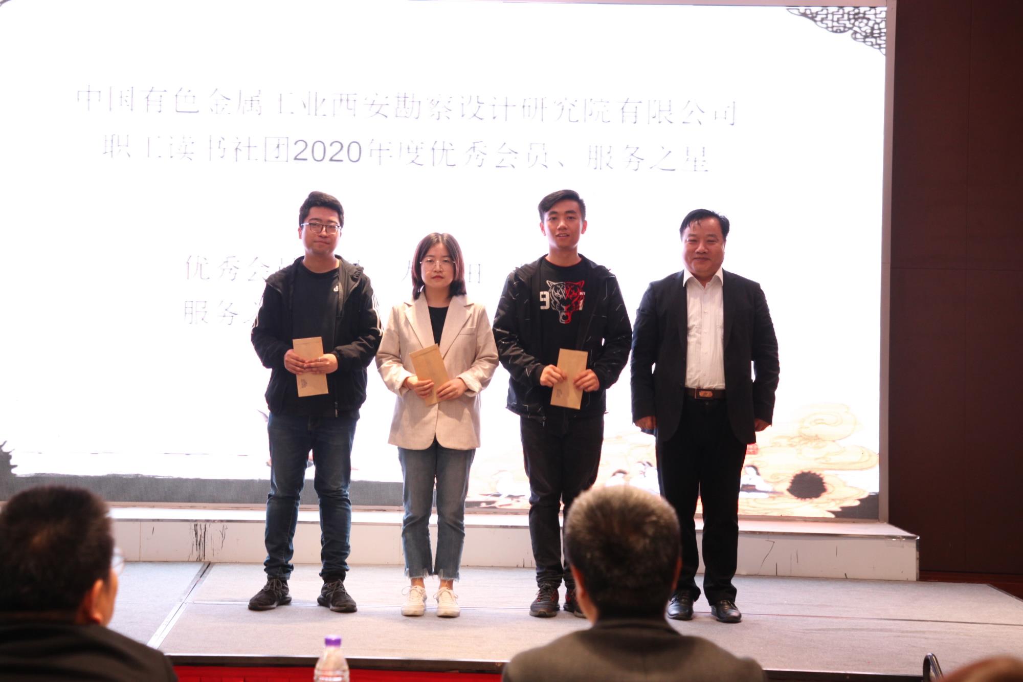 活动分为两部分,第一部分为读书社团2020年度总结表彰会。会上,公司副总经理、读书社团会长董忠级同志为读书社团西安有色设计院分会进行了授牌。公司纪委书记韩秋分别为获得优秀会员和服务之星荣誉的会员颁发了荣誉证书。读书社团有色建设分会、曲江国际饭店分会负责人分别就各分会读书活动开展情况进行了汇报。社团秘书长许蒙国汇报了2020年度主要工作及2021年重点工作安排。