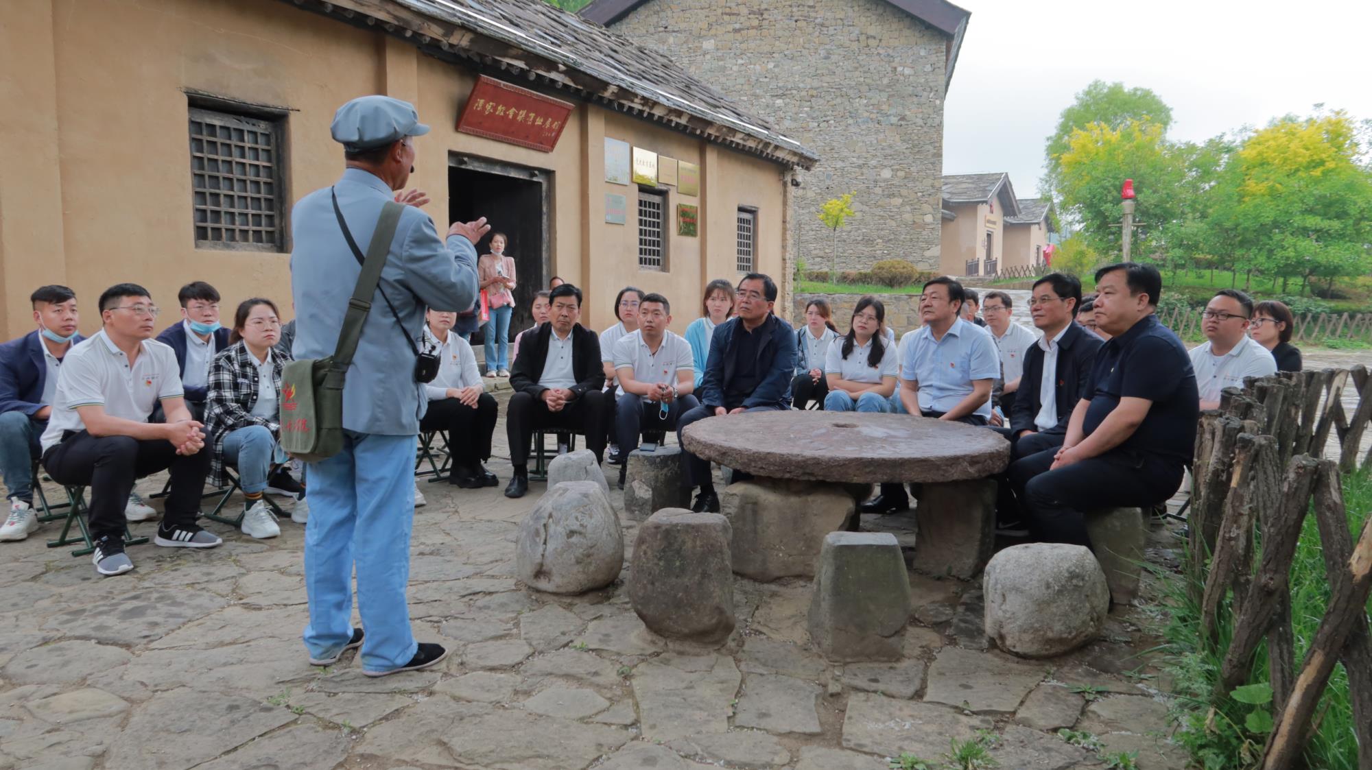 在陈家坡会议遗址,70岁的革命旧址守护者、照金精神传承人杜天祥老人身着红军军装,详细陈述了陈家坡会议历史,并总结了会议的艰难历程和重要历史意义。