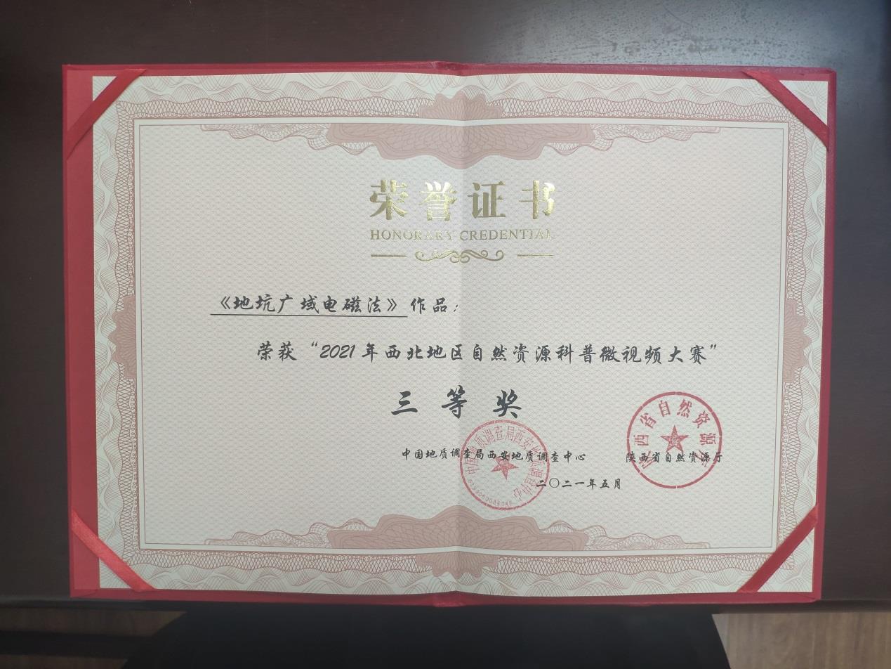 近日,由中国地质调查局西安地质调查中心、陕西省自然资源厅共同举办的首届西北地区自然资源科普微视频大赛评选结果出炉,地矿集团物化探总队公司选送的微视频《地-坑广域电磁法》荣获三等奖。