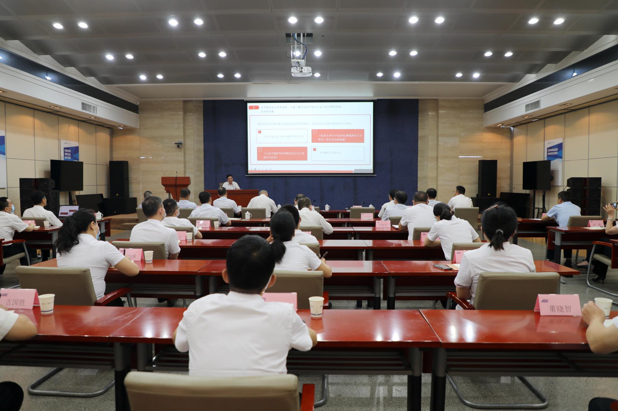 邹武装作了主题为”学史明理 学史增信 学史崇德、学史力行“的党课宣讲。他深入阐述了深入学习领会习近平总书记关于党的历史的重要论述,充分认识开展党史学习教育的重大意义,详细讲解了认真研读党史基本著作,全面了解中国共产党百年奋斗的光辉历程和历史性贡献,以及如何深刻把握党史学习教育的重点、弄通做实习近平新时代中国特色社会主义思想,增强“四个意识”、坚定“四个自信”,做到“两个维护”。