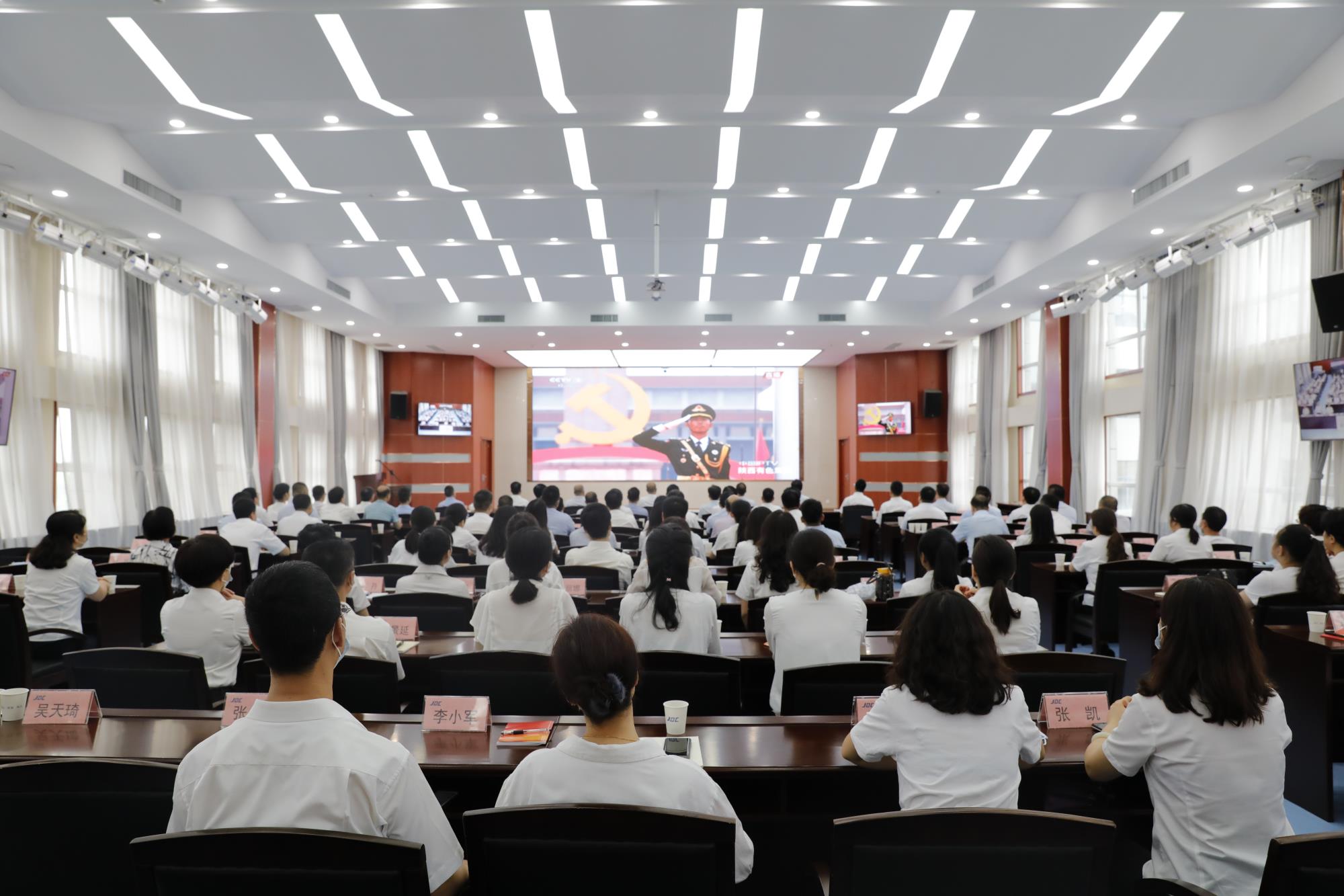会前,公司党委对收听收看庆祝中国共产党成立100周年大会实况转播进行了安排,要求各单位党组织要通过中心组学习、“三会一课”等形式,组织党员干部职工深入开展学习活动,深刻领会习近平总书记在庆祝大会上重要讲话的重大意义、精神实质和深刻内涵,切实把思想和行动统一到重要讲话精神上来。要不断深化学习、统一思想,以习近平总书记的重要讲话为指引,深刻理解党的百年奋斗历程特别是党的十八大以来党和国家各项事业取得的历史性成就、发生的历史性变革,进一步提振党员干部职工担当作为、干事创业的壮志豪情,凝聚力量、鼓舞斗志、不懈奋斗,为完成全年奋斗目标,持续推动公司高质量发展,作出新的更大贡献。