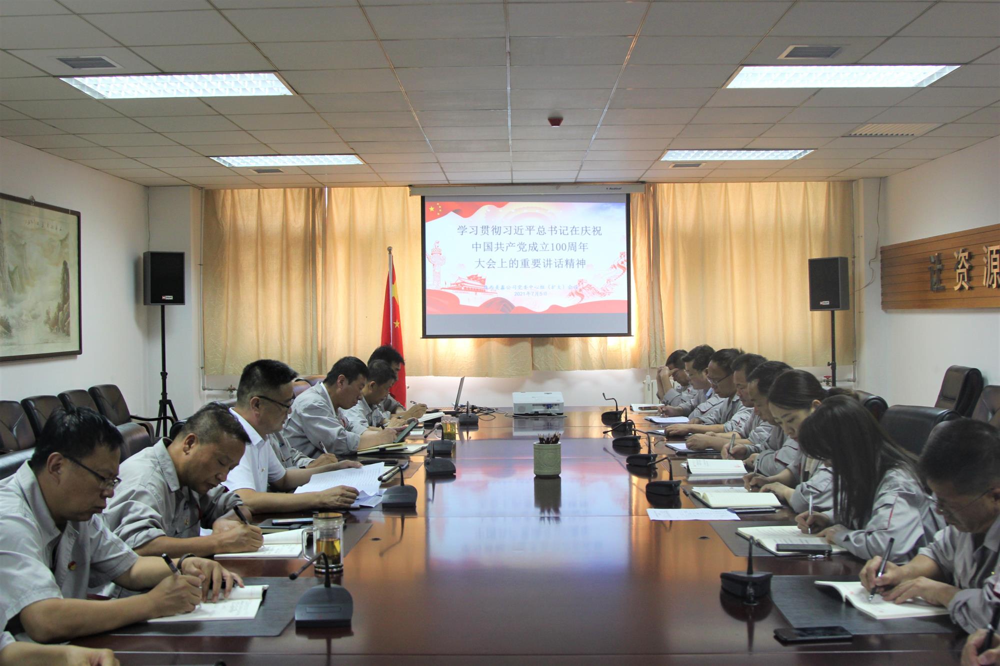 7月5日上午,陕西美鑫公司党委理论学习中心组召开专题学习会议,深入学习习近平总书记在庆祝中国共产党成立100周年大会上的重要讲话精神。会议由公司党委书记、董事长高晓兵主持,公司党委中心组成员参加会议,党群部门负责人,各基层单位负责人列席会议。