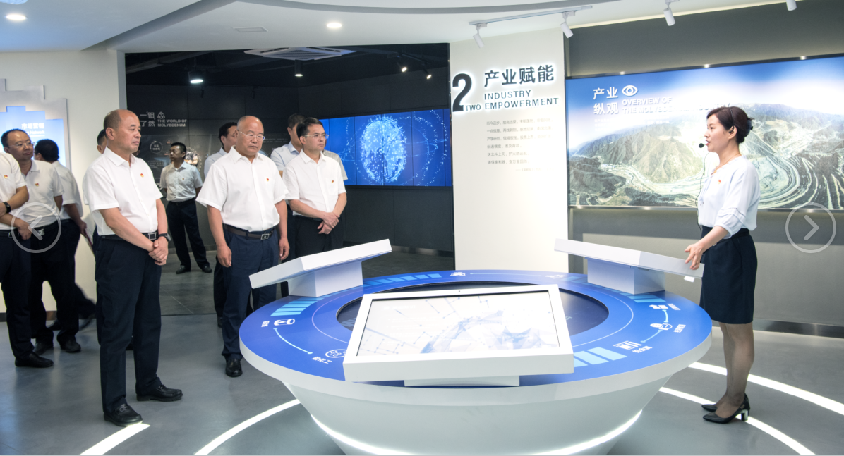 公司展厅由公司党委宣传部负责承建,位于金城大厦一楼西侧,建筑面积约370平方米,分为走进金钼、产业赋能、社会责任、党建引领、金钼之星和走向未来6个展示单元。在为期半年多的施工建设中,收集了大量的素材,甄选出代表公司重要发展时刻的珍贵图文资料,借助现代化声光电集成技术,再现了金钼人在60余年发展中取得的骄人业绩和奋进昂扬的精彩瞬间,呈献给大家一场科技与创新、文化与艺术的视觉盛宴。