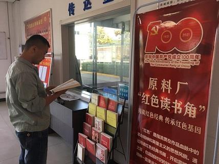 原料厂党支部精心挑选的《家风传承》、《家书里的百年信仰》、《火种》、《红岩》等近20本红色经典著作,一经展出就受到党员干部和职工群众的喜爱。有驻足翻阅的,也有登记后带回车间、班组阅读的,醒目的红色读书角成了原料厂一道亮丽的风景线。