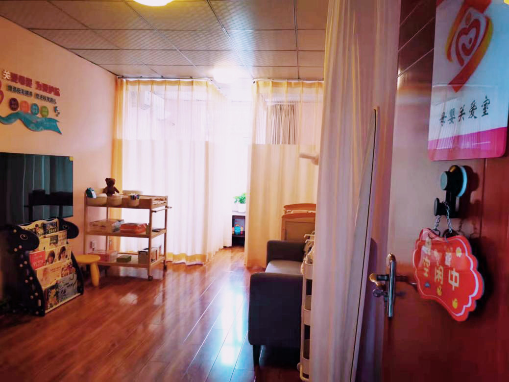 “母婴关爱室”设施齐全、温馨舒适。室内为孕期、哺乳期女职工提供了婴儿护理台、婴儿床、吸乳器、紫外线消毒灯、奶瓶蒸汽消毒锅、应急医疗包、饮水机、电视机、电冰箱、空调、空气净化器等设备;哺乳、护理、冲奶、休息等功能区相对独立;尿不湿、婴儿玩具、踩脚凳等物品应有尽有;装修建材绿色环保,家居建材质量过关,并由专人负责日常管理和物品清洁消毒;提供多种育儿书籍、专业育儿视频,便于女职工在闲暇时查阅学习。