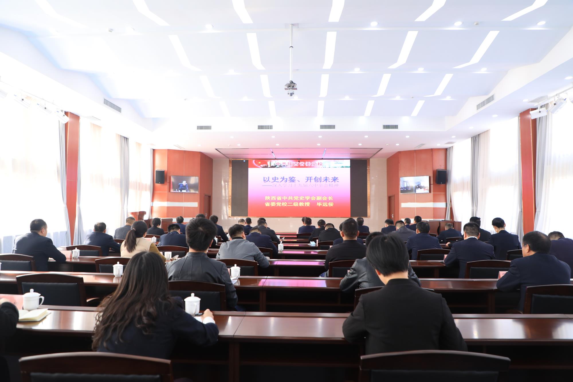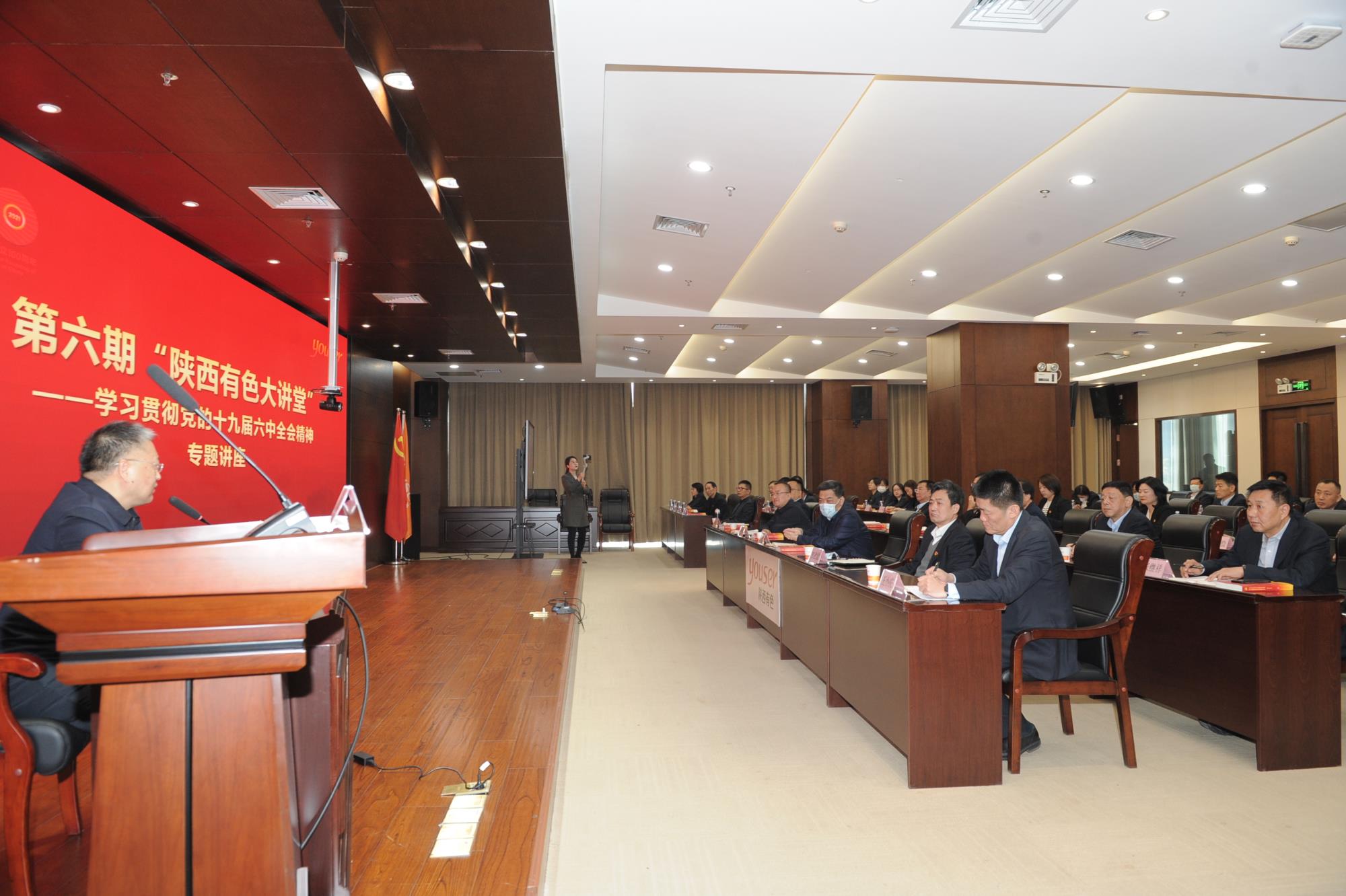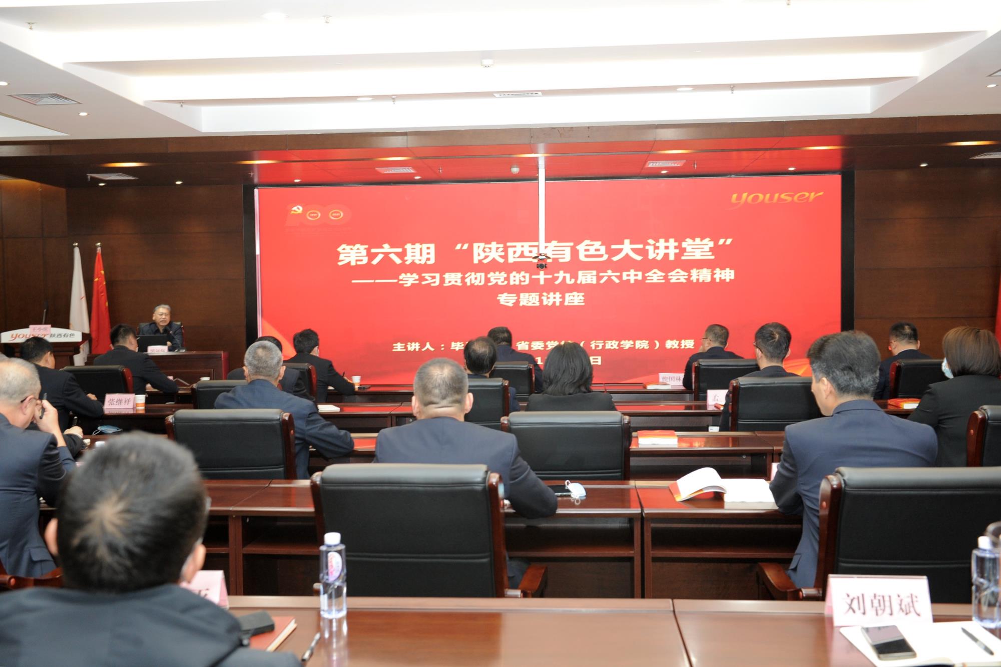 11月25日,威廉希尔williamhill中文党委举办第六期“陕西有色大讲堂”——党的十九届六中全会精神宣讲辅导专题讲座,邀请省委党校(行政学院)毕远佞教授作辅导报告。集团公司党委书记、董事长马宝平,党委副书记、总经理邹武装等领导班子成员、总部中层以上干部参加,党委副书记、董事王小庆主持讲座。