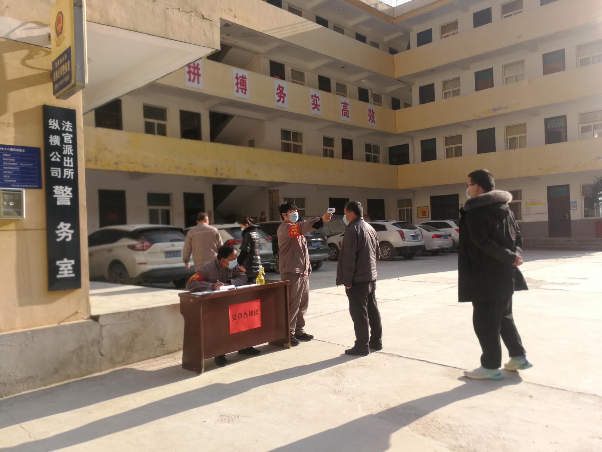 “同志,请稍等,配合扫码测温!”循声望去,一辆白色越野车正准备驶入公司大门,两位戴红袖章的中年男子边喊边拿着健康码迎上了上去。车内司乘人员逐一扫码、测温、登记后,互道感谢,车辆放行……这是在713总队公司商州本部大院防疫卡点常见的一幕。