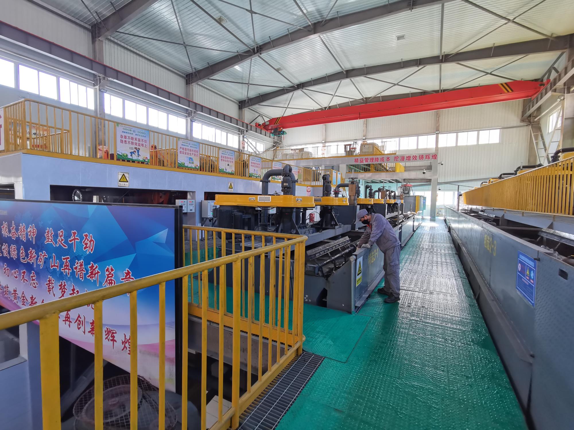 四方金矿浮选车间工人检查设备作业情况