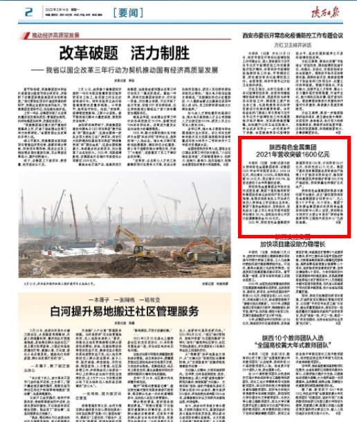2021年,威廉希尔williamhill中文安排固投项目154项,计划投资34.07亿元,实际完成41.71亿元。集团下属的宝钛集团高品质钛铁生产线等3个扩能项目投料运行,榆林新材料集团杭来湾煤矿新增200万吨产能获批,陕西美鑫冶坪煤矿正式生产。