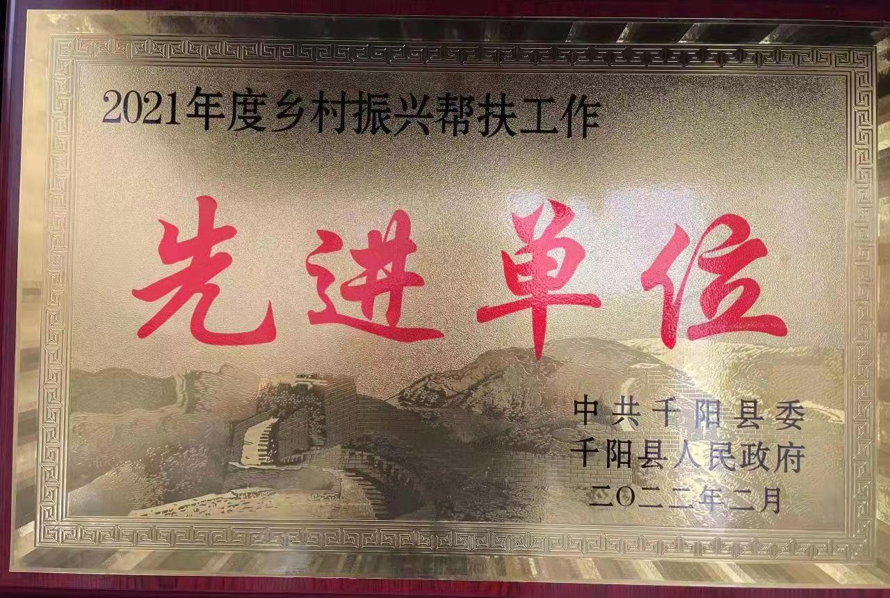 近日,在千阳县2022年发展大会上,地矿集团陕西铅硐山矿业有限公司被千阳县委、县政府评为“2021年度乡村振兴帮扶工作先进单位”。
