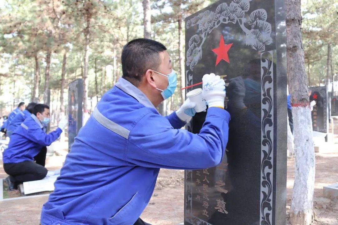 青山绿水存浩气,烈士墓前祭忠魂。上午8点,同志们统一着装,佩戴党员徽章及口罩,携带金色油漆、排笔、手套、毛巾等工具,来到榆林烈士陵园。庄严肃穆的陵园里,带着岁月痕迹的纪念碑矗立眼前,上面刻着:“革命烈士永垂不朽”八个大字,在纪念碑的四周种有松柏,松柏代表万古长青,表示革命烈士的今生永远活在我们心中。站在纪念碑前,大家怀着无比敬重的心情。首先,为纪念碑敬献花篮并整理缎带,党员同志依次敬献菊花,朵朵白花寄托着我们的哀思。