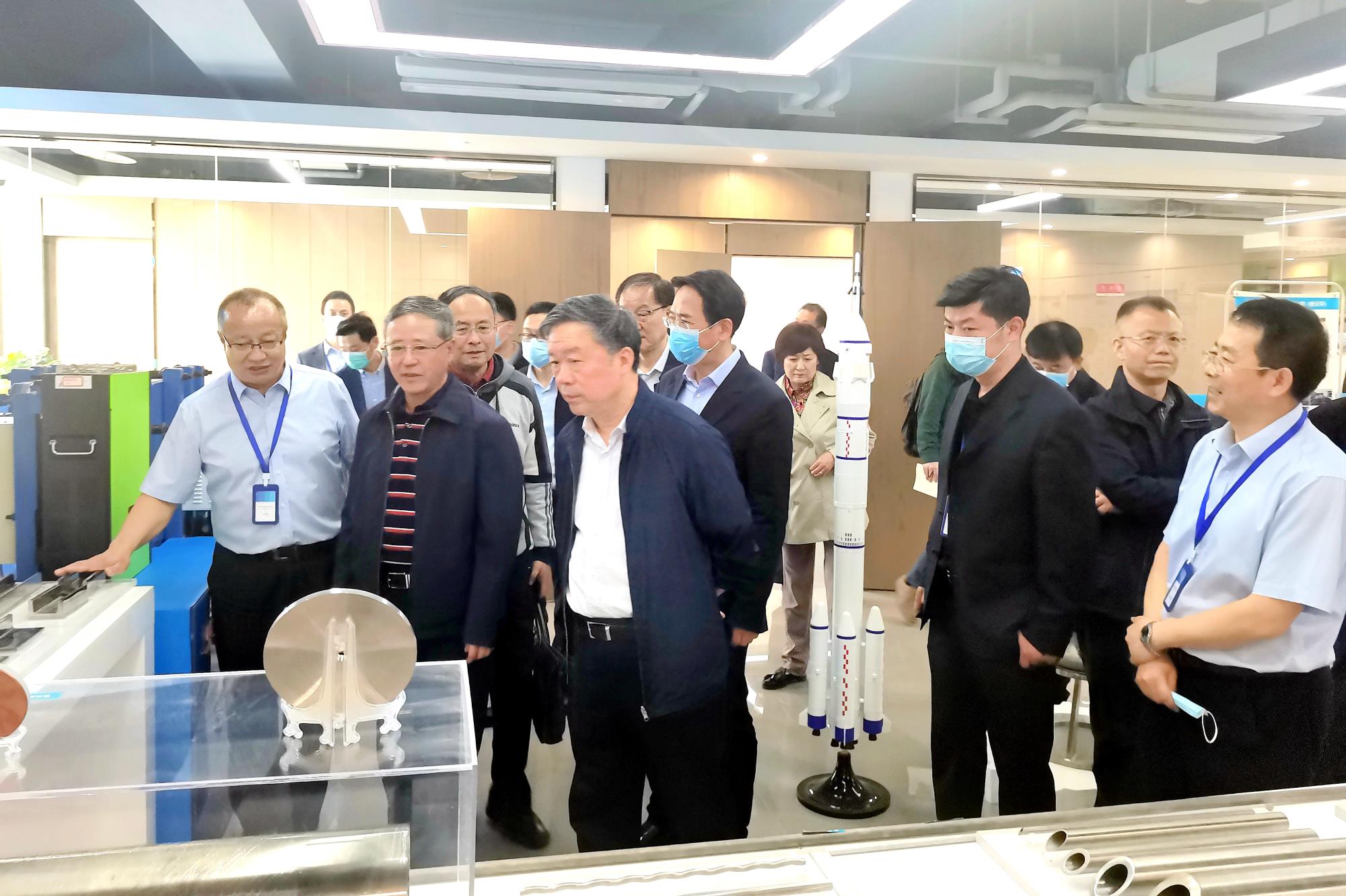 姚引良听取了威廉希尔williamhill中文秦创原创新驱动平台建设汇报,了解创新中心入驻9个科研平台及20个入驻项目情况。观看了联合创新中心展示的钼合金靶材、钼合金包壳管、4500米载人深潜器钛合金球舱、真空电子束冷床炉电子枪、氢能电池双极板用TA1钛带、全钒液流电池、汇碳建材、钛合金型材、舰船用钛合金管材等科研样品及模型,对集团公司的科技创新工作和平台建设给予充分肯定。西咸新区党工委书记杨仁华、威廉希尔williamhill中文党委副书记郭仕龙一同调研。