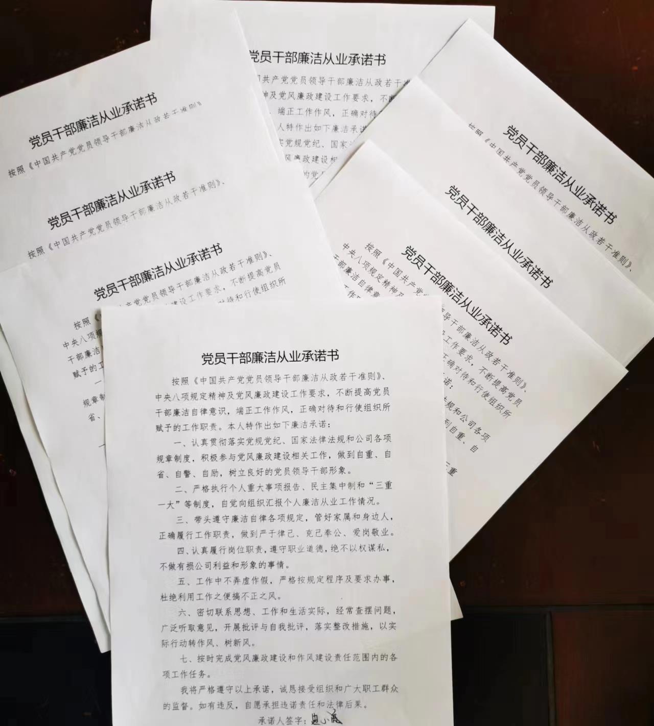 廉洁承诺求真务实。按照全面从严治党要求,结合《国有企业领导人员廉洁从业若干规定》,党支部围绕中央八项规定精神、“七字”作风建设、公司规章制度和岗位职业操守等内容编制《廉洁从业承诺书》,从生活作风和工作作风两个层面,进一步规范党员干部的行为准则。通过深入开展践诺承诺活动,党员干部的纪律意识、廉洁意识和责任意识显著增强。