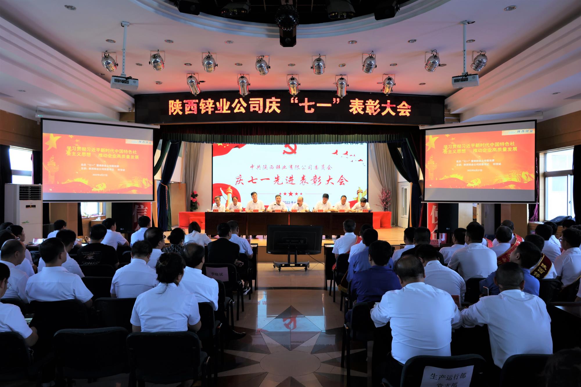 6月27日下午,陕西锌业公司召开庆“七一”先进表彰大会。表彰过去一年涌现出来的先进基层党支部、优秀共产党员和优秀党务工作者,进一步动员广大党员和全体员工鼓起干劲,学习先进,赶超先进。公司领导班子成员、总经理助理、全体党员等参加会议,会议由党委副书记、总经理崔旭东主持。
