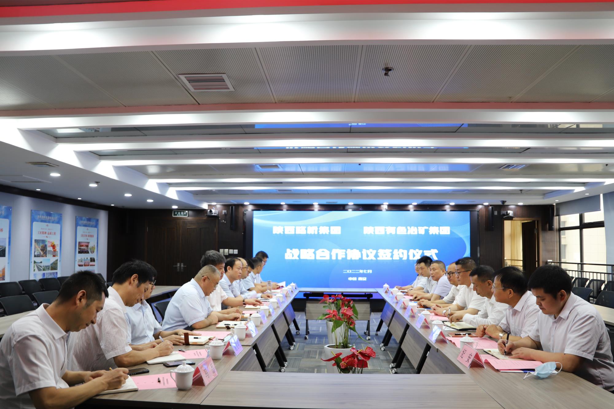 7月13日上午,陕西有色冶矿集团与陕西路桥集团举行战略合作协议签约仪式暨项目合作座谈会,双方将在尾矿与废石利用、矿业产品销售、矿产资源开发、建设工程等方面开展深度合作。路桥集团董事长周恩德,冶矿集团党委书记、董事长李忠民出席签约仪式并致辞。