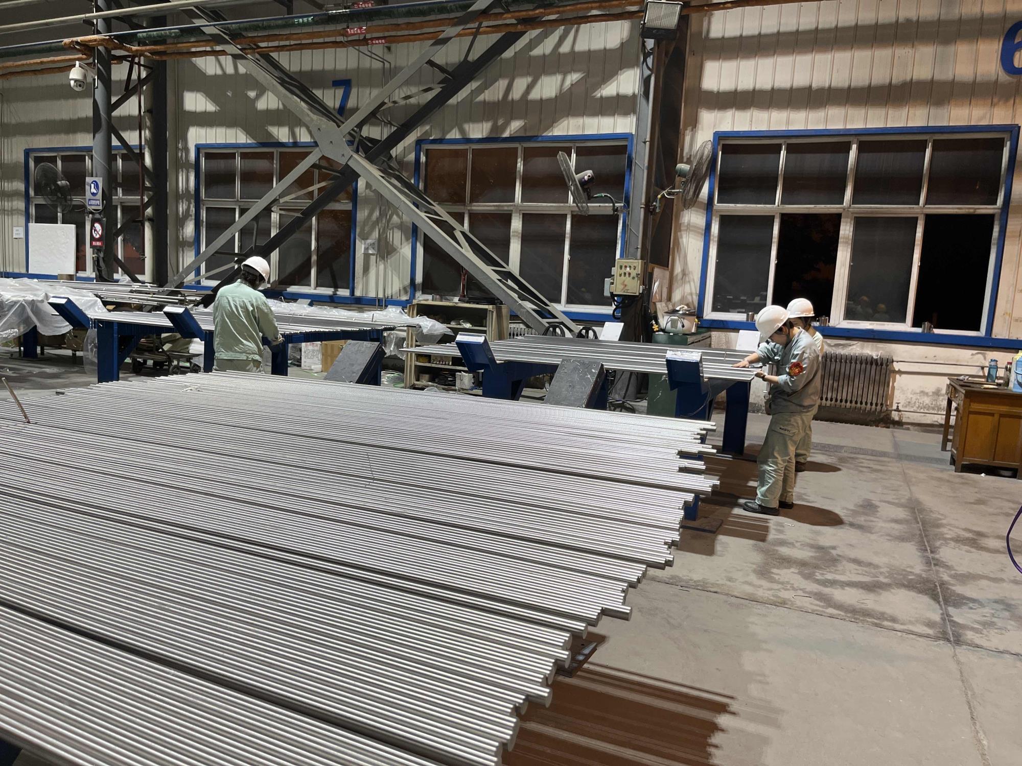 上半年,宝钛集团线材厂设备管理部门先后开展550粗轧机CK17进口导卫改进、中轧4架甩机架轧制输送装置优化等热轧线设备改造10余项,进一步提升轧件表面质量和轧制通过率,降低劳动强度,提高生产效率。自主实施后部精整工序工装及辅助装置改进,完成医疗用棒材“V”型退火料槽的设计制作,满足高端医疗产品退火后棒材直线度不降低的工艺需求;围绕航天航空紧固件用钛合金大单重盘圆丝材研发项目,积极推进丝材抛光及检测生产线、涂覆生产线和高精度无心车组、井式热处理炉等固定资产投资计划,满足棒丝材新品研发和产业化发展需求,为棒丝材产业高质量发展提供装备保障。