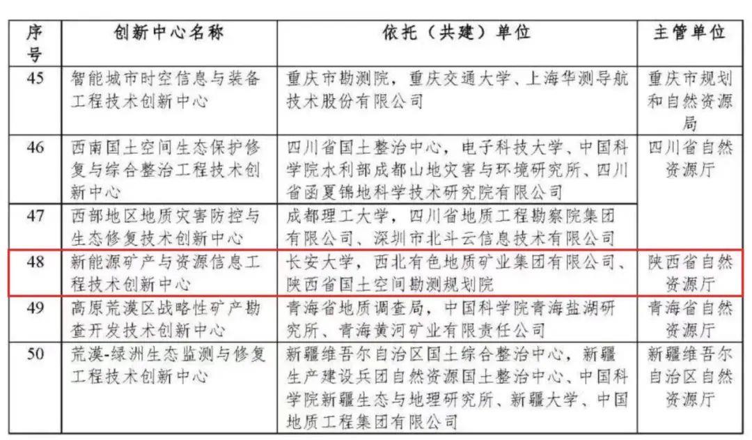 据悉,本次全国有50家工程技术创新中心获得批复,“新能源矿产与资源信息工程技术创新中心”是陕西省唯一一家获得批复的创新中心,也是陕西省自然资源系统第二家部级工程技术创新中心。