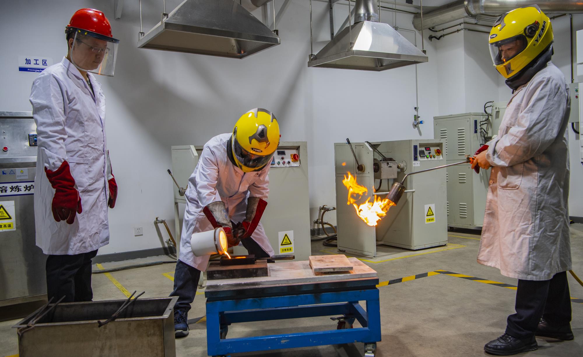 西安秦金熔炼车间正在进行黄金熔铸