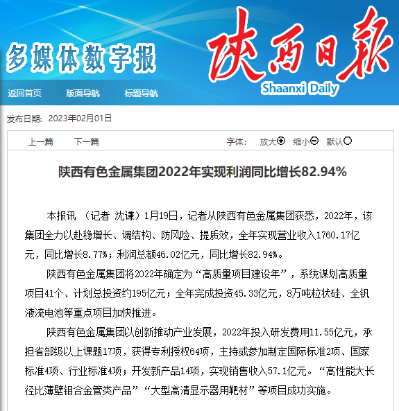陕西日报:威廉希尔williamhill中文2022年实现利润同比增长82.94%