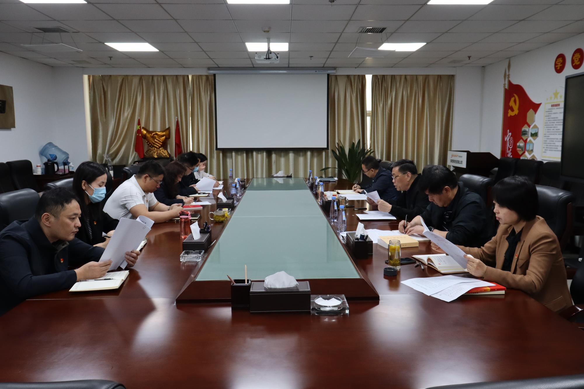 会议传达学习了习近平总书记在听取陕西省委和省政府工作汇报的重要讲话精神。集体学习了《二十大党章修正案学习问答》《习近平著作选读》《论党的自我革命》等书籍中关于国有企业相关的内容。