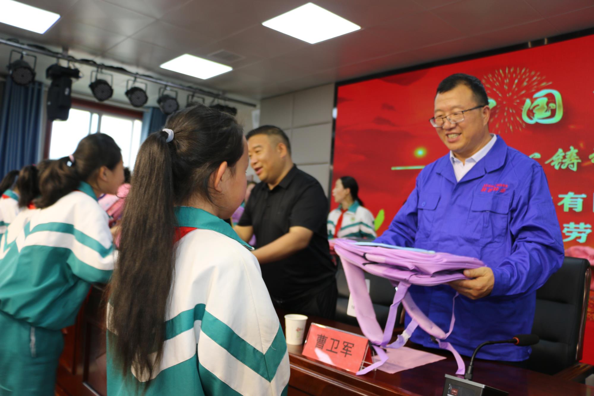 活动最后,陕西锌业公司向困难学生赠送了书包、文具盒等学习用品,并合影留念。向孩子们送上节日祝福、共同庆祝“六一儿童节”。