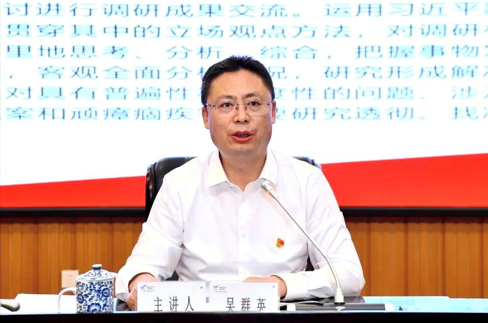 吴群英以《深入开展学习贯彻习近平新时代中国特色社会主义思想主题教育 推动高质量发展取得新的更大成效》为题,围绕开展主题教育的重大意义、习近平新时代中国特色社会主义思想的核心要义、开展主题教育要大兴调查研究、以高质量发展的成效检验主题教育成果等四个方面进行了深入浅出的讲授。