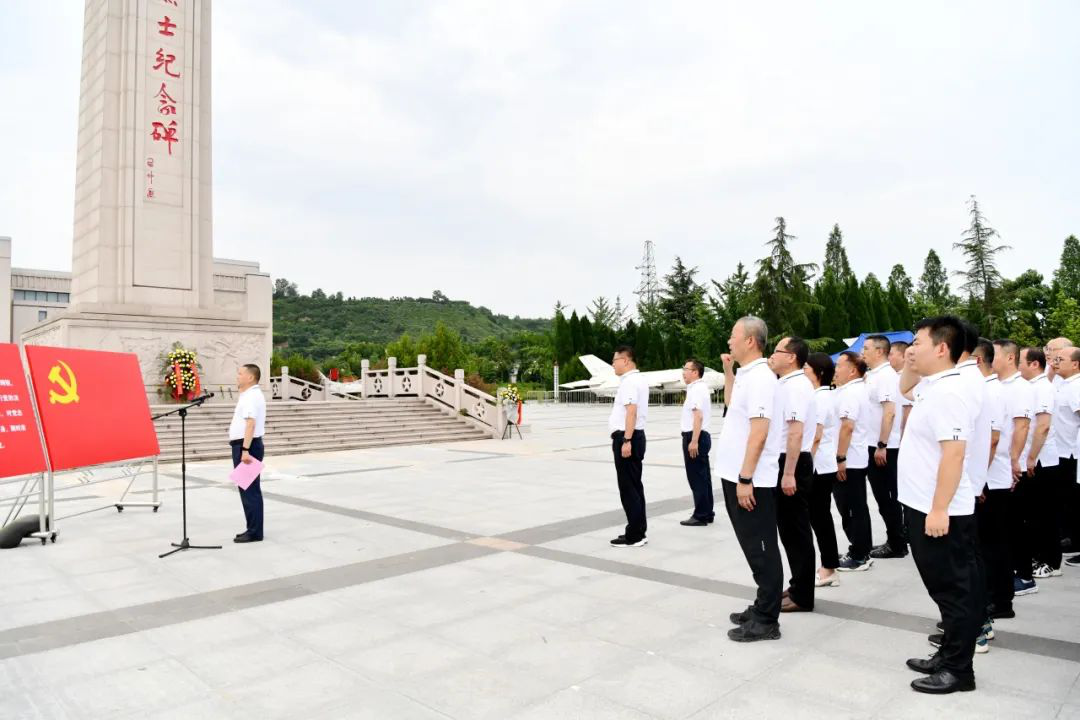 为庆祝中国共产党成立102周年,扎实推进学习贯彻习近平新时代中国特色社会主义思想主题教育走深走实,6月28日下午,宝钛集团党委在眉县扶眉战役纪念馆开展了“追寻先烈足迹 赓续红色精神”主题党日活动。公司党委副书记、总经理雷让岐现场讲授主题教育专题党课。党委副书记、工会主席王建超主持活动。