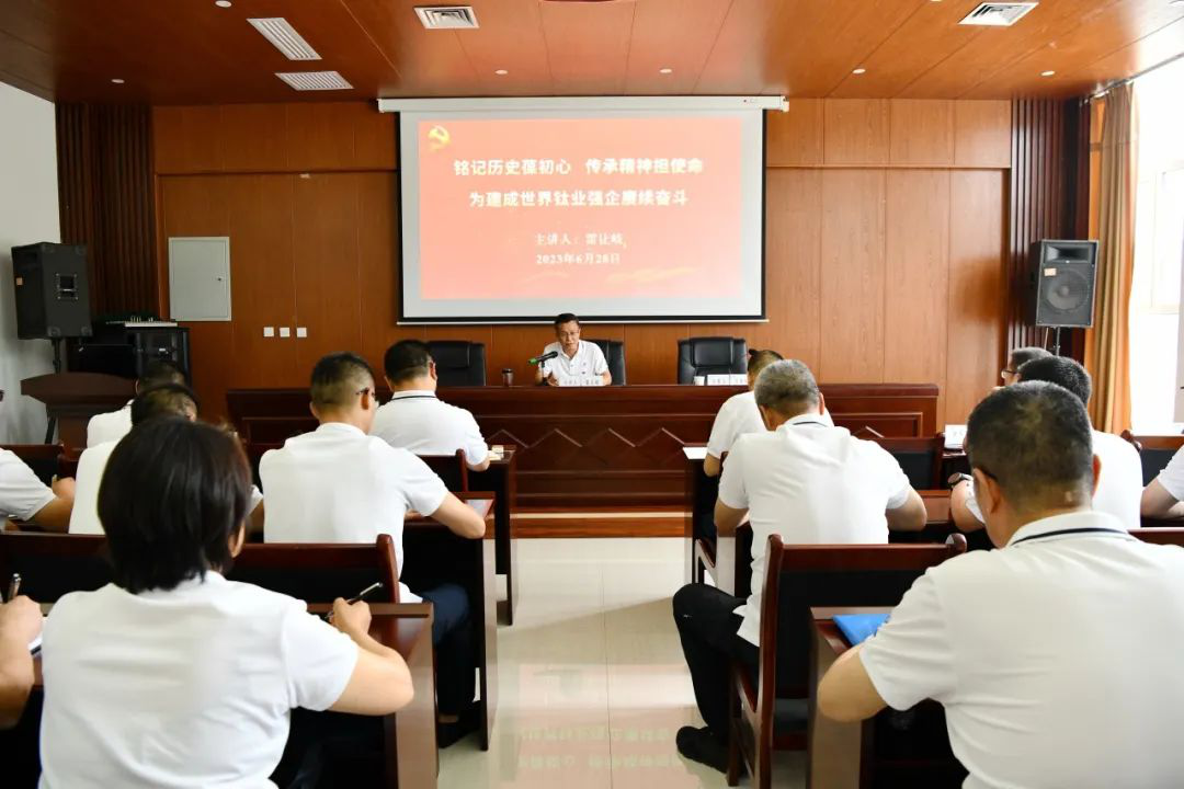 在扶眉战役纪念馆会议室,雷让岐以《铭记历史葆初心 传承精神担使命 为建成世界钛业强企赓续奋斗》为题,现场为大家讲授了主题教育专题党课。