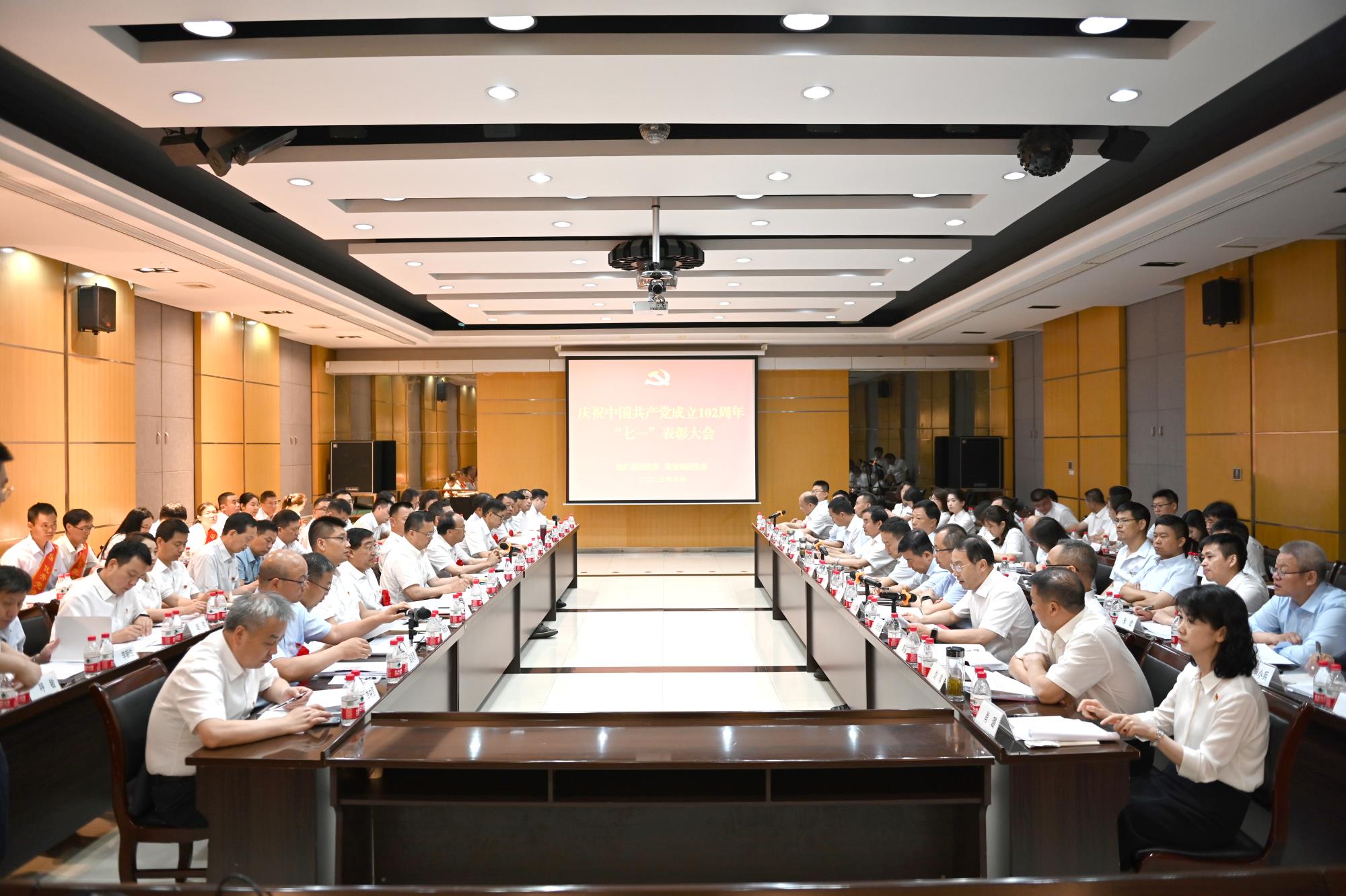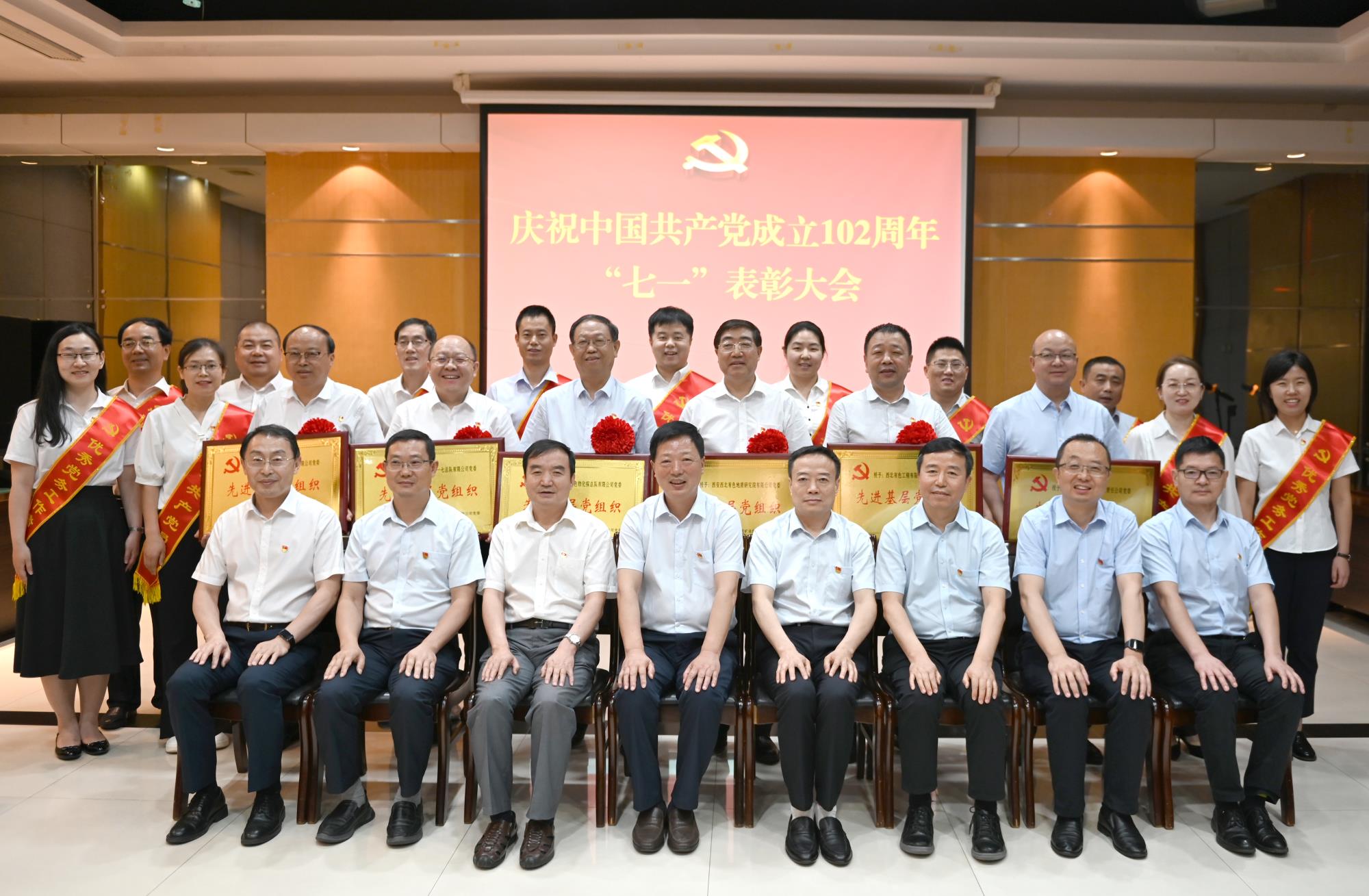 在即将迎来中国共产党成立102周年之际,6月29日,地矿集团党委、黄金集团党委召开“七一”表彰大会,重温党的光辉历程,讴歌党的丰功伟绩,表彰一批先进典型,教育引导各级党组织和广大党员、干部以先进典型为榜样,汲取强大的精神力量,奋力谱写两集团高质量发展新篇章。