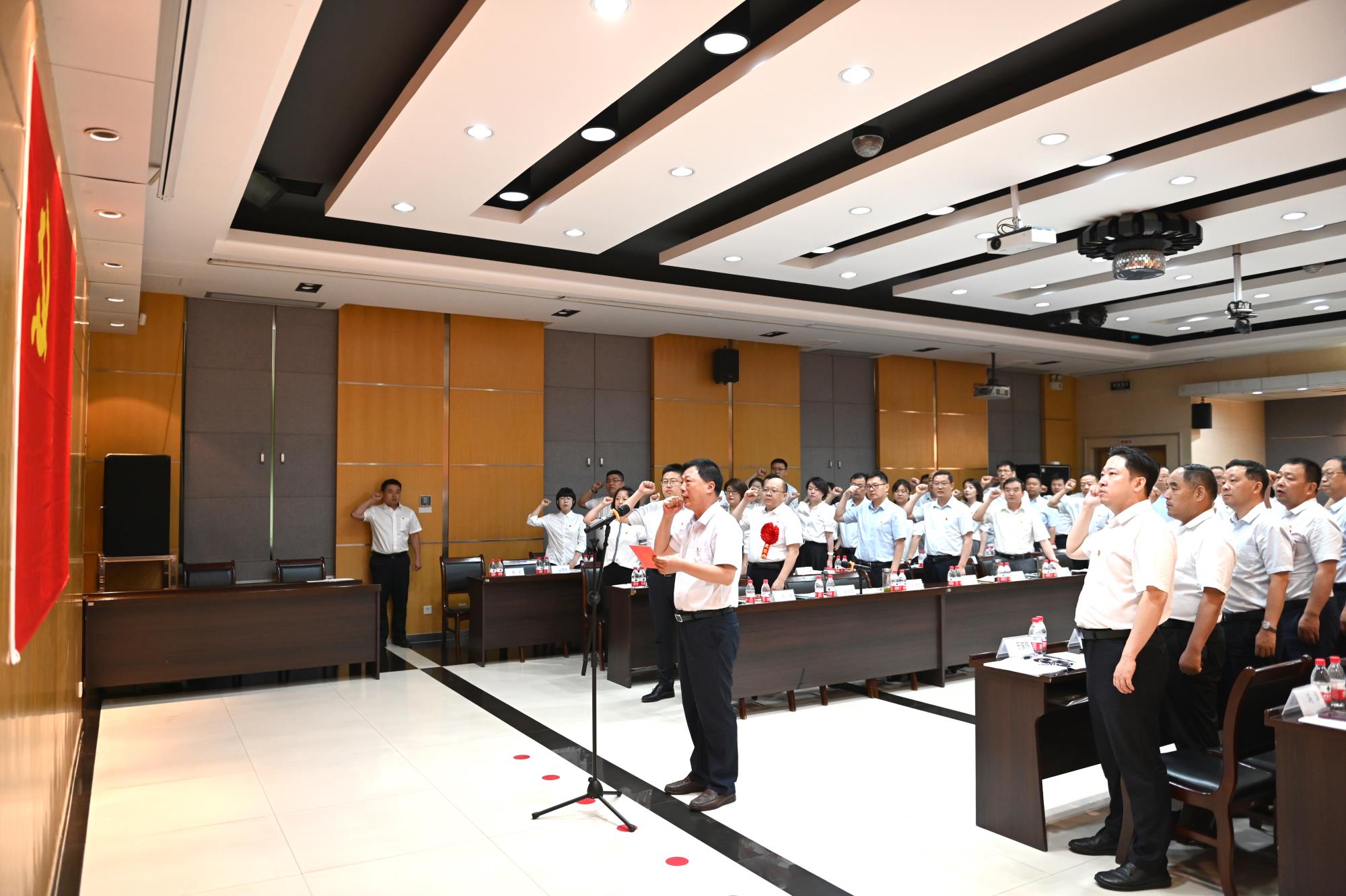 随后,高菊生带领全体党员在党旗下庄严宣誓,与会人员重温入党誓词。铿锵的誓词,让在场的每一位党员都得到了精神的洗礼和党性的锤炼。