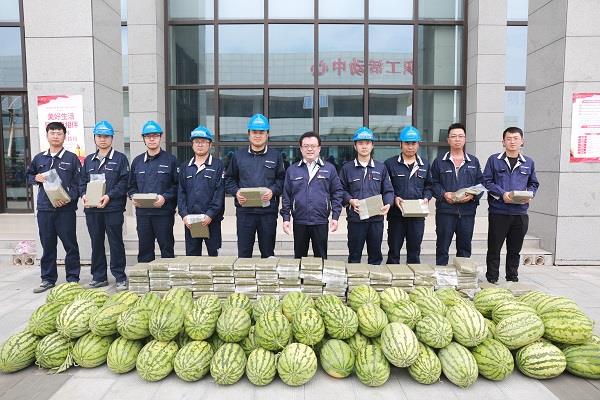 今年,公司工会在夏季送清凉活动中,投入6.3万余元采购公司定点帮扶村坑镇刘家坬村和村企共建帮扶村王家砭镇豪则沟村农副产品,7月19日下午,公司党委副书记、总经理苏旭盛、工会主席胡磊向高温下坚守岗位的一线职工送去西瓜和绿豆,并为他们送上公司的关心关怀,叮嘱大家注意身体,增强安全生产意识,做好夏日防护,防止高温中暑,同时也引导鼓励广大职工积极参与到消费扶贫中来,为乡村振兴贡献力量。