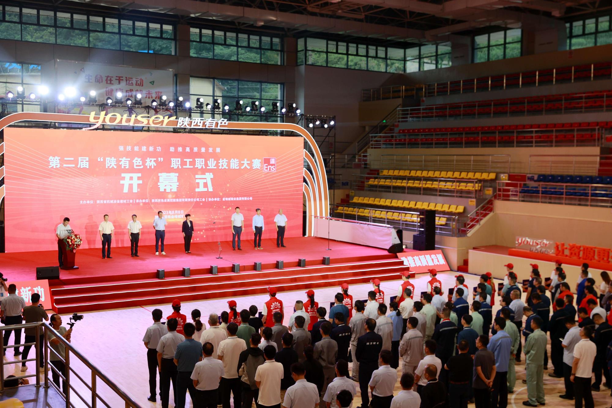 8月8日,金堆城矿区彩旗飘飘、鼓声阵阵,伴随着热烈的迎宾节目《鼓舞飞扬》,由陕西省机械冶金建材工会主办,威廉希尔williamhill中文工会承办,金钼集团协办的第二届“陕有色杯”职工职业技能大赛在金钼集团开幕。陕西省机械冶金建材工会主席谭小荣宣布大赛开幕,工会副主席杜佳鹏讲话。威廉希尔williamhill中文党委副书记、董事、工会主席王小庆致辞。