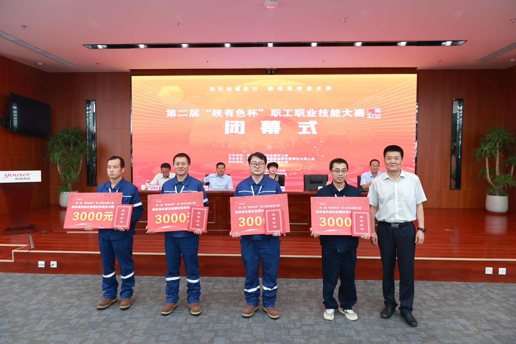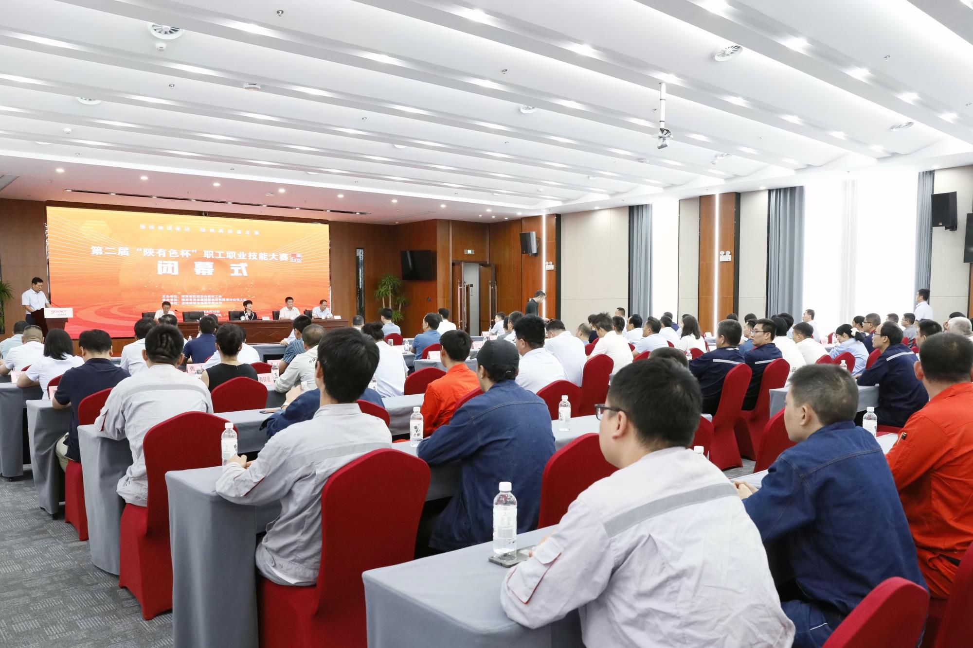 王小庆在闭幕式上讲话。他指出,此次大赛为广大职工搭建了成长成才平台,有效调动了职工的积极性,激发了职工的劳动热情和创造潜能,在全面提高产业工人素质、提高职工职业认同感、获得感、幸福感上发挥了重要作用。各单位要认真提炼本次大赛的好经验、好做法,高标准推进赛后成果转化工作。同时,根据职工队伍结构,积极推动更多工种纳入大赛,将“陕有色杯”职业技能大赛打造为集团标志性赛事,引领和带动更多的职工学习技能、提高技能,为企业发展贡献才智。