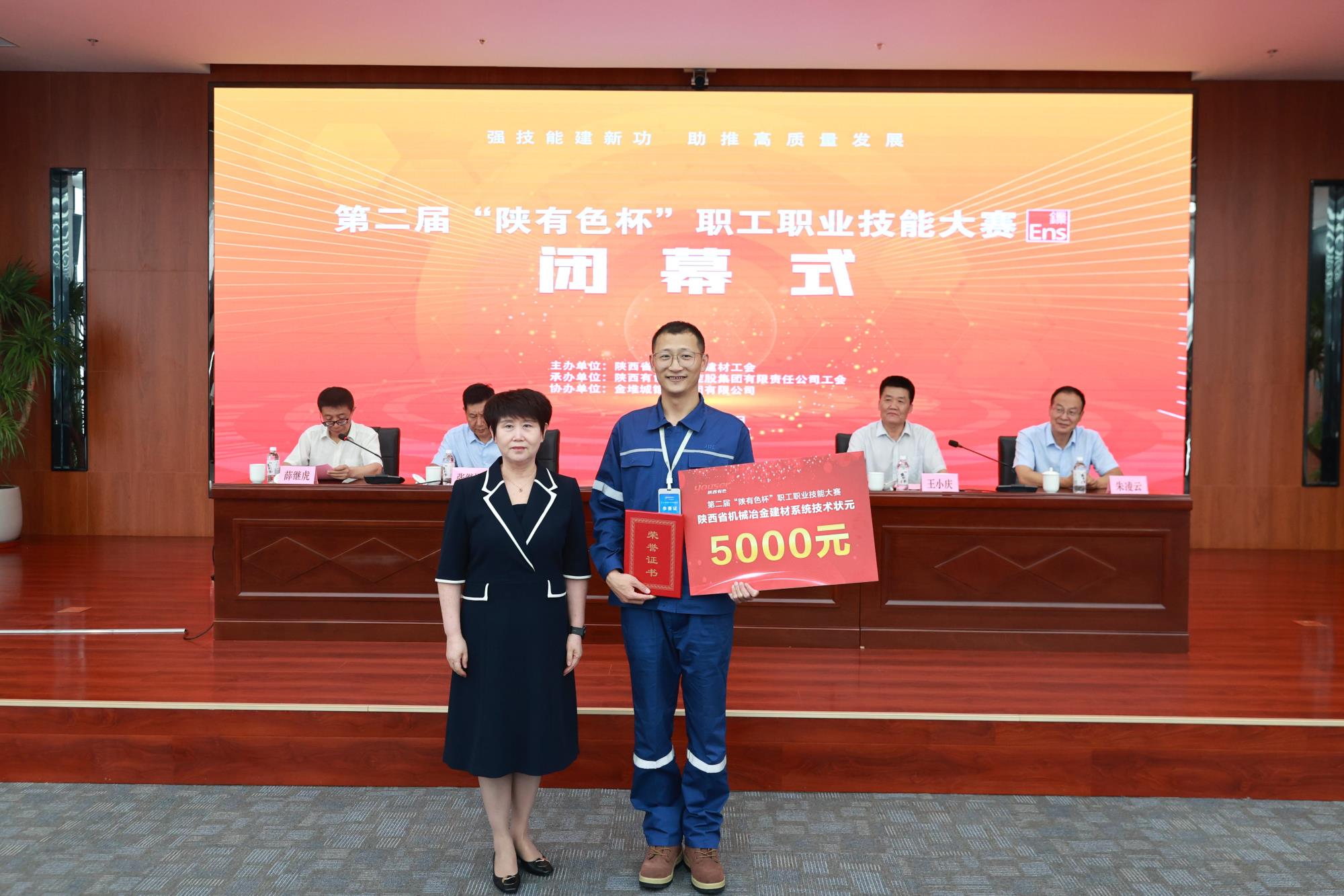 省机械冶金建材工会主席谭小荣,威廉希尔williamhill中文党委副书记、董事、工会主席王小庆,工会常务副主席张继祥,人力资源培训部经理、大赛总裁判长王学庆,金钼集团党委副书记朱凌云出席闭幕式。省机械冶金建材工会二级调研员薛继虎主持闭幕式,并宣布第二届“陕有色杯”职工职业技能大赛闭幕!
