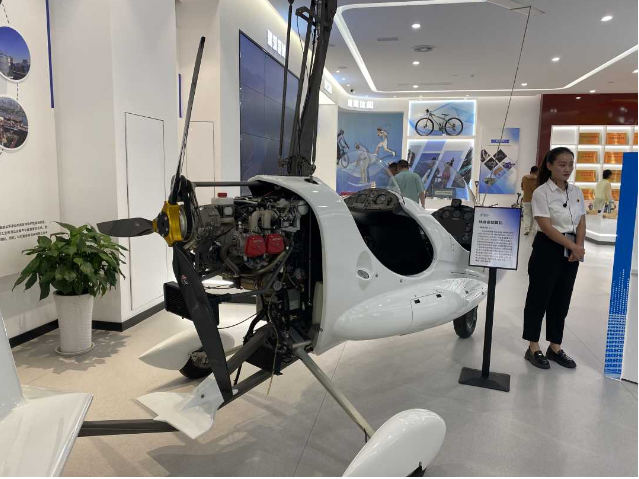 陕西宝鸡宝钛集团有限公司展览馆里显示的钛合金旋翼机,钛合金用量约占飞机金属材料用量的60%至70%。经济日报记者 刘蓉摄
