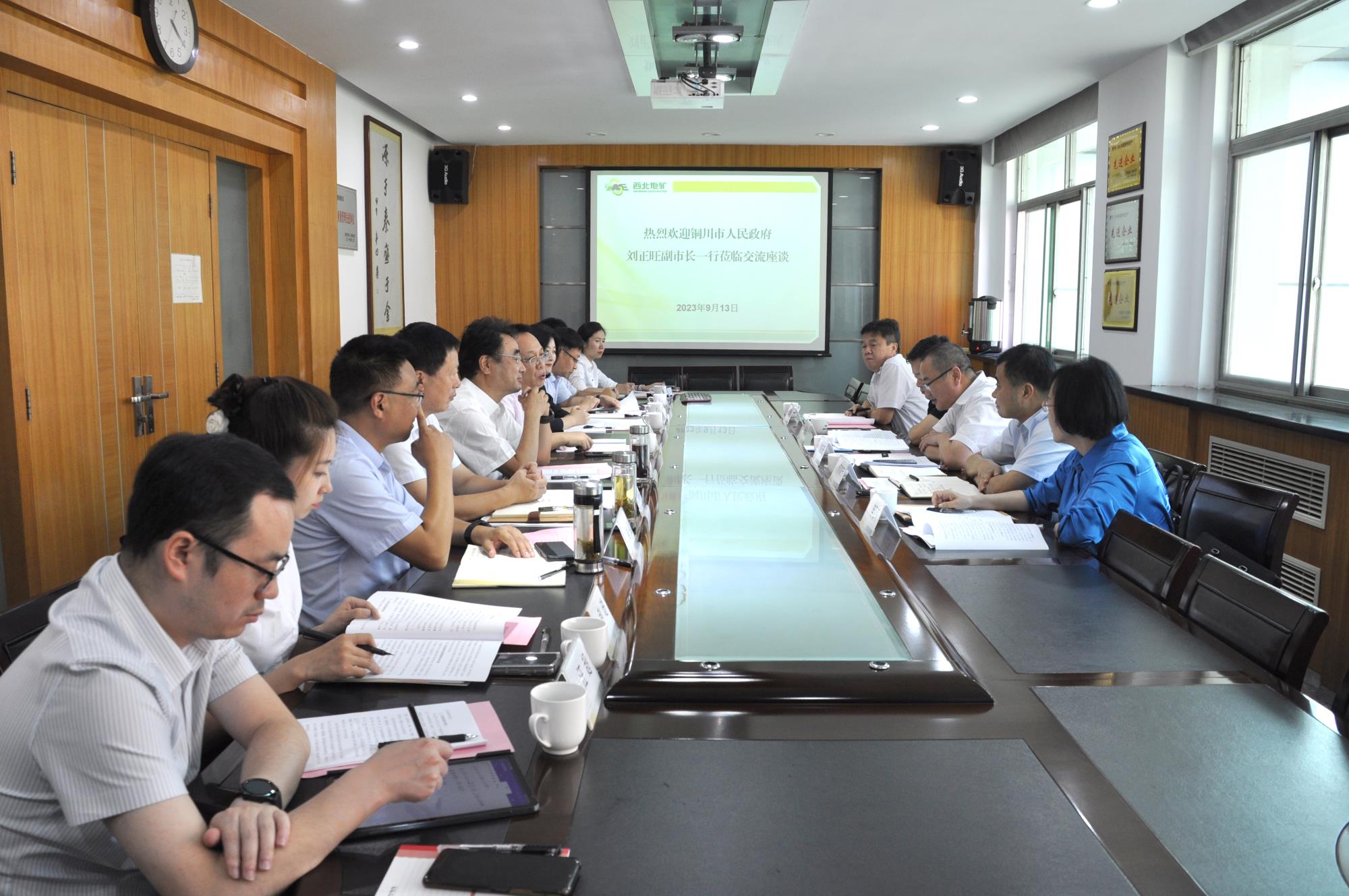 9月13日,威廉希尔williamhill中文党委委员、副总经理王天雄,威廉希尔williamhill中文董事,地矿集团党委书记、董事长秦西社在地矿集团本部与铜川市副市长刘正旺一行座谈交流。地矿集团党委副书记、总经理高菊生,威廉希尔williamhill中文战略发展改革部经理王颖、副经理席宇鹏,陕西美鑫投资公司党委副书记、副总经理侯小强参加座谈。