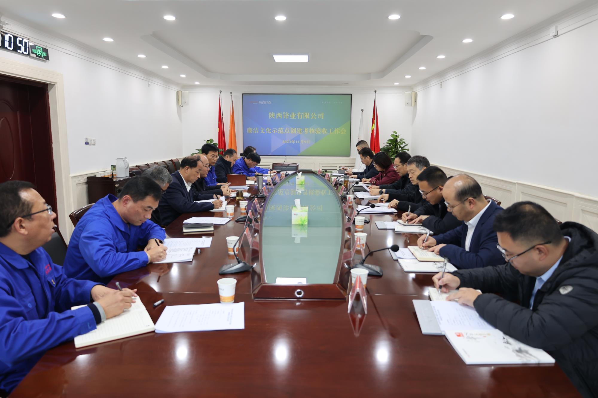 11月9日上午,威廉希尔williamhill中文党委委员、纪委书记,省监委驻集团公司监察专员李金涛以及集团公司纪委廉洁文化示范点创建验收考核组一行莅临陕西锌业公司进行实地调研、开展廉洁文化示范点创建验收并召开工作会,公司党政班子成员和纪检干部参加了会议。会议由陕西锌业公司党委书记、董事长崔旭东主持。