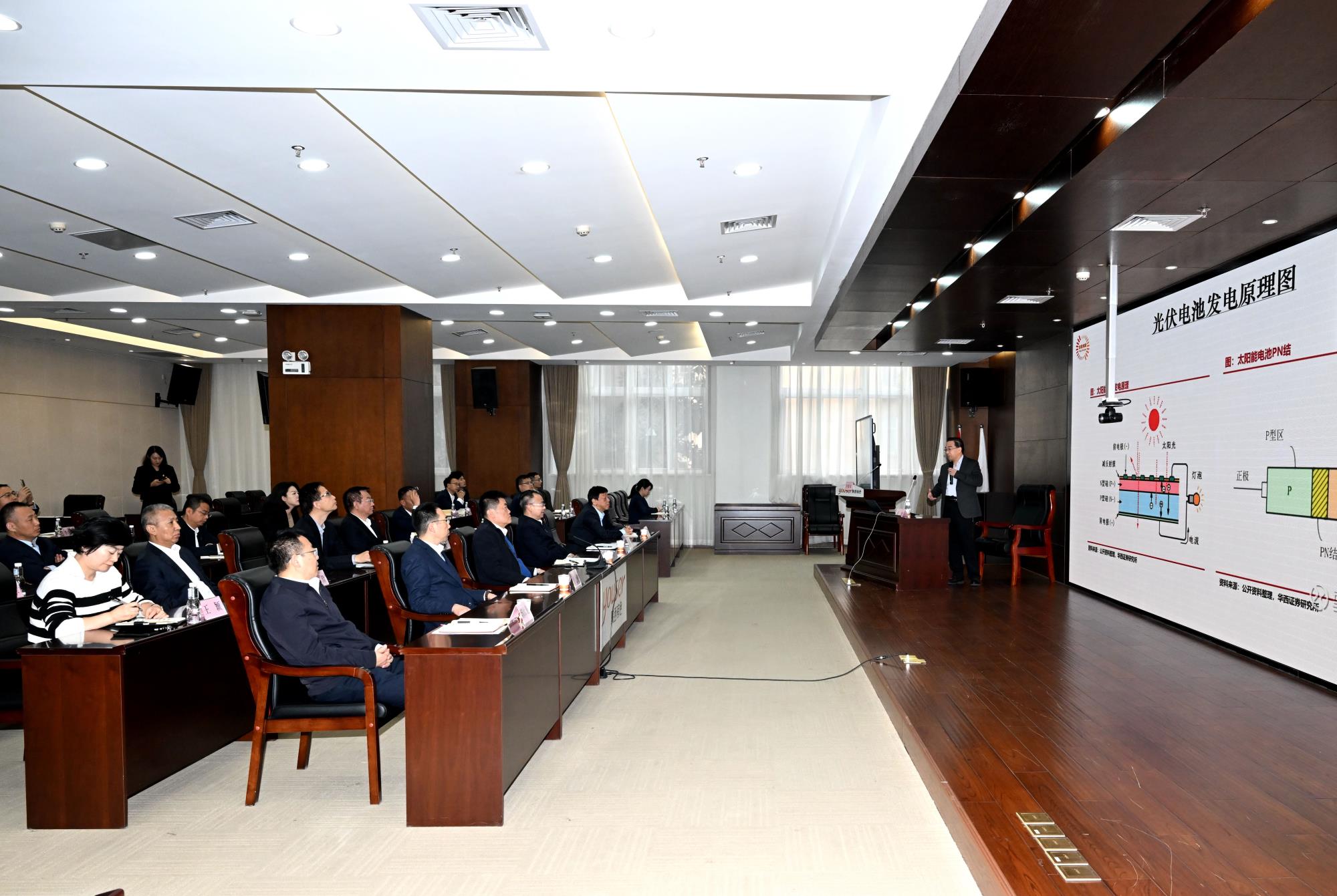 讲座紧扣习近平总书记关于科技创新的重要论述,深入浅出地介绍了钙钛矿的基本知识、钙钛矿太阳能电池关键技术、突出优点、钙钛矿产业发展状况、未来市场空间,并以西安浴日光能科技有限公司的技术研发为案列,讲解了第三代光伏技术钙钛矿太阳能的基本概念、应用前景、产业化趋势,具有很强的专业性、先进性,为广大干部职工普及了一门绿色新能源高新技术知识,开阔了产业发展和科技创新的视野,对集团公司紧密围绕“材装并进、高端绿色”的总定位,紧扣产业链图谱,“五级延链建群”,大力发展战略性新兴产业,一体推动产业链项目谋划实施、创新链项目谋划实施具有很好的现实启发和思想启迪。讲座既有理论讲解、技术解读,又有实践案例和路径指引,是一堂精彩的科技普及课、新技术讲解课和战略性新兴产业发展路径指引课,受到干部职工的一致好评。讲座以视频会议方式举行,威廉希尔williamhill中文领导班子成员、中层以上干部和战略发展改革部、企管运营信息部、科研技术创新部有关人员在集团总部主讲堂参加;权属二三级企业领导班子成员、机关中层干部及生产、科研、规划等相关部门人员在本单位视频会议分讲堂参加。