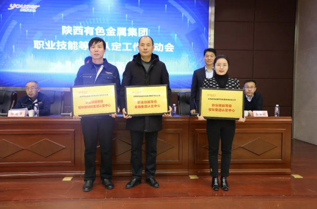 会上,杨国平致欢迎辞,温惊涛介绍了首次职业技能等级认定工作筹备情况,俞舸作了职业技能等级认定相关政策解读。俞舸、王天雄、王学庆分别向金钼集团、宝钛集团、榆林新材料集团三个职业技能等级认定中心授牌。王天雄作了总结讲话并宣布集团公司职业技能等级认定工作启动。