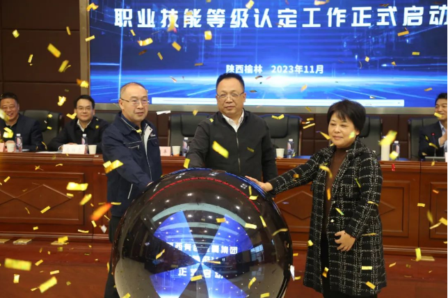 陕西省职业技能鉴定指导中心信息管理部副部长俞舸,威廉希尔williamhill中文党委委员、副总经理、职业技能等级认定中心主任王天雄,人力资源培训部经理、职业技能等级认定中心副主任王学庆,人力资源培训部副经理、职业技能等级认定中心办公室主任温惊涛,榆林新材料集团党委副书记、总经理、职业技能等级认定中心主任杨国平参加启动会。